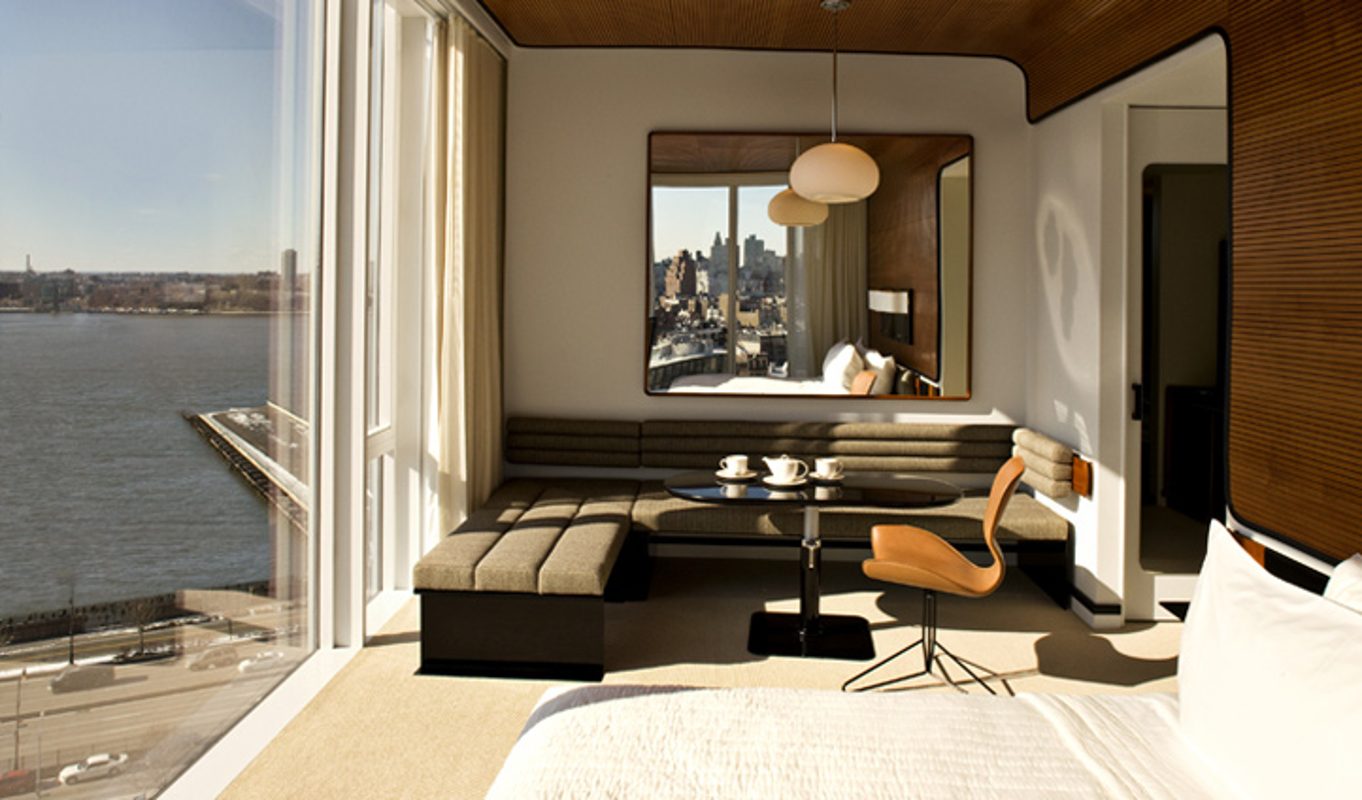 Set on the Hudson Riverside, The Standard High Line is an impressive 18-story building that towers above the high line. Its glassy exterior makes it a stunning, modern landmark of downtown New York, and inside the minimalist décor and stylish furnishings create a serene and sophisticated atmosphere. All 338 rooms, including 4 suites offer spectacular views of New York City skyline. On the ground floor of the hotel, a cosy bar and grill offers a stylish twist on American cuisine combining a traditional steakhouse with new American food that is open to try for breakfast or dinner, whilst the German- inspired beer garden offers sausages, pretzels, beer and table tennis.