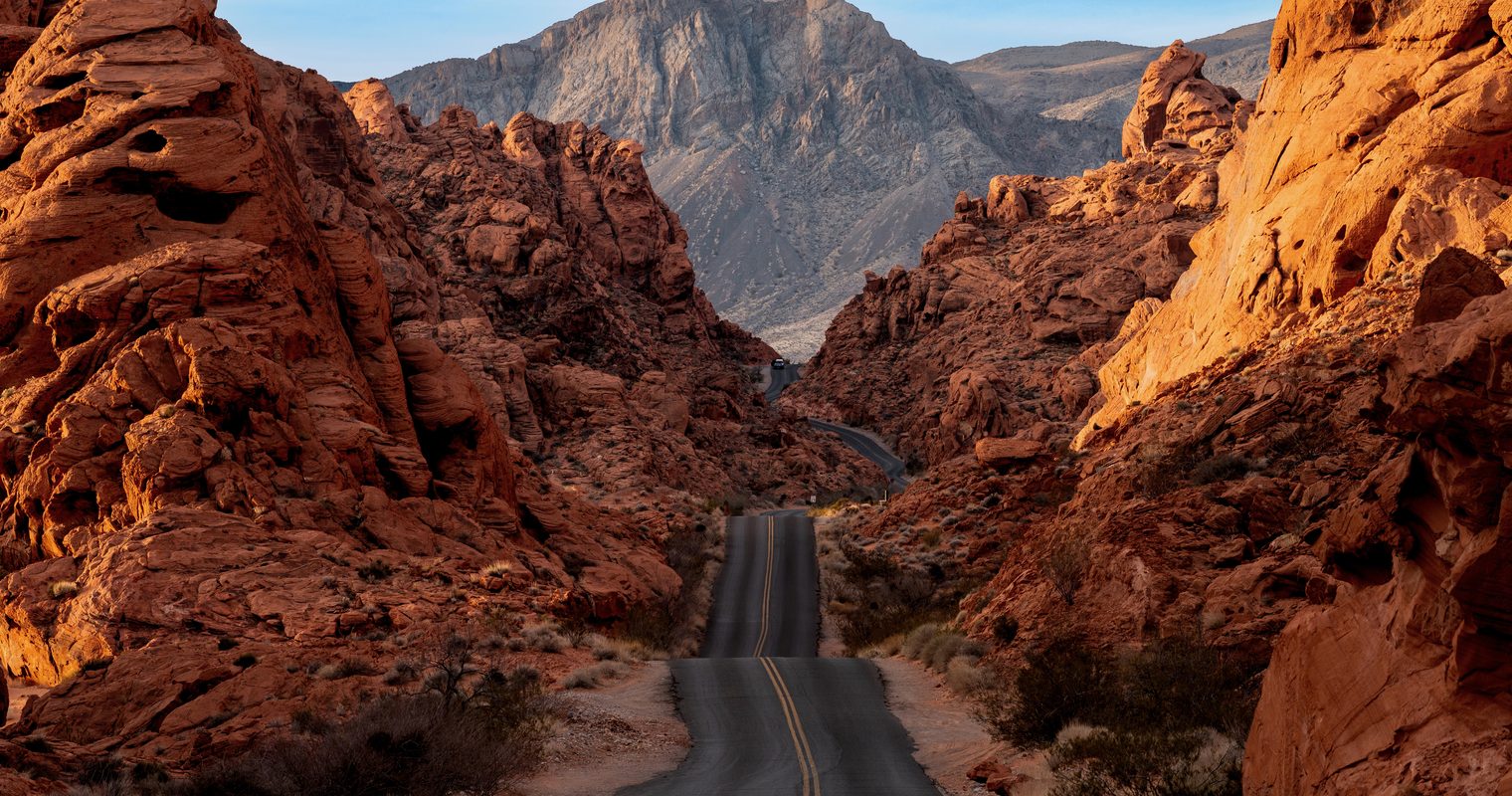 Your final show-stopping National Park is Zion, where you’ll spend a day hiking, canyoneering and rappelling through slot canyons to your heart’s content. Back at Cliffrose Lodge that evening, it’s just you, the National Park – and a roaming buffalo herd. Tomorrow, you’ll swap the original American dream for the land of excess as you drive across the state border into Nevada and down one of the most famous streets in the world – the Las Vegas strip. We haven’t brought you here for the casinos though, but for an off-road driving adventure through the red-hilled Valley of Fire.