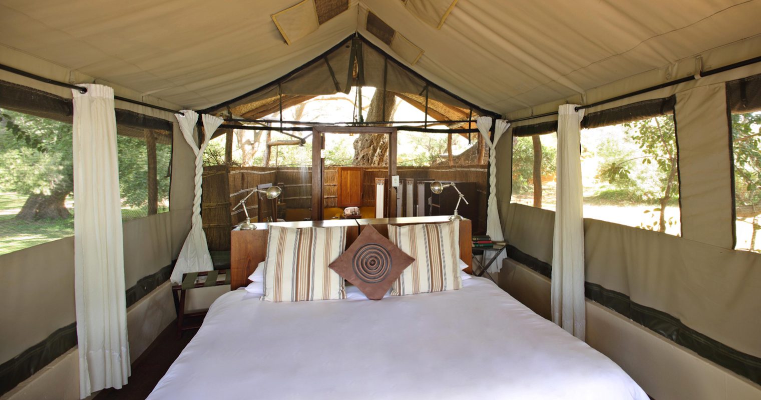 The romantic canvas en-suite tents are located on the riverside. If you choose to stay in one of the five suites you will have an outdoor bathroom, plunge pool to cool off in and private veranda offering spectacular views of the Zambezi River. The Albida Suite has two bedrooms, ideal for families with children. Expect to hear the sounds of the wildlife as you relax by your private campfire and gaze at the gorgeous star lit night sky. Local game can often be spotted as you lay in bed so you’ll be counting elephants instead of sheep here.