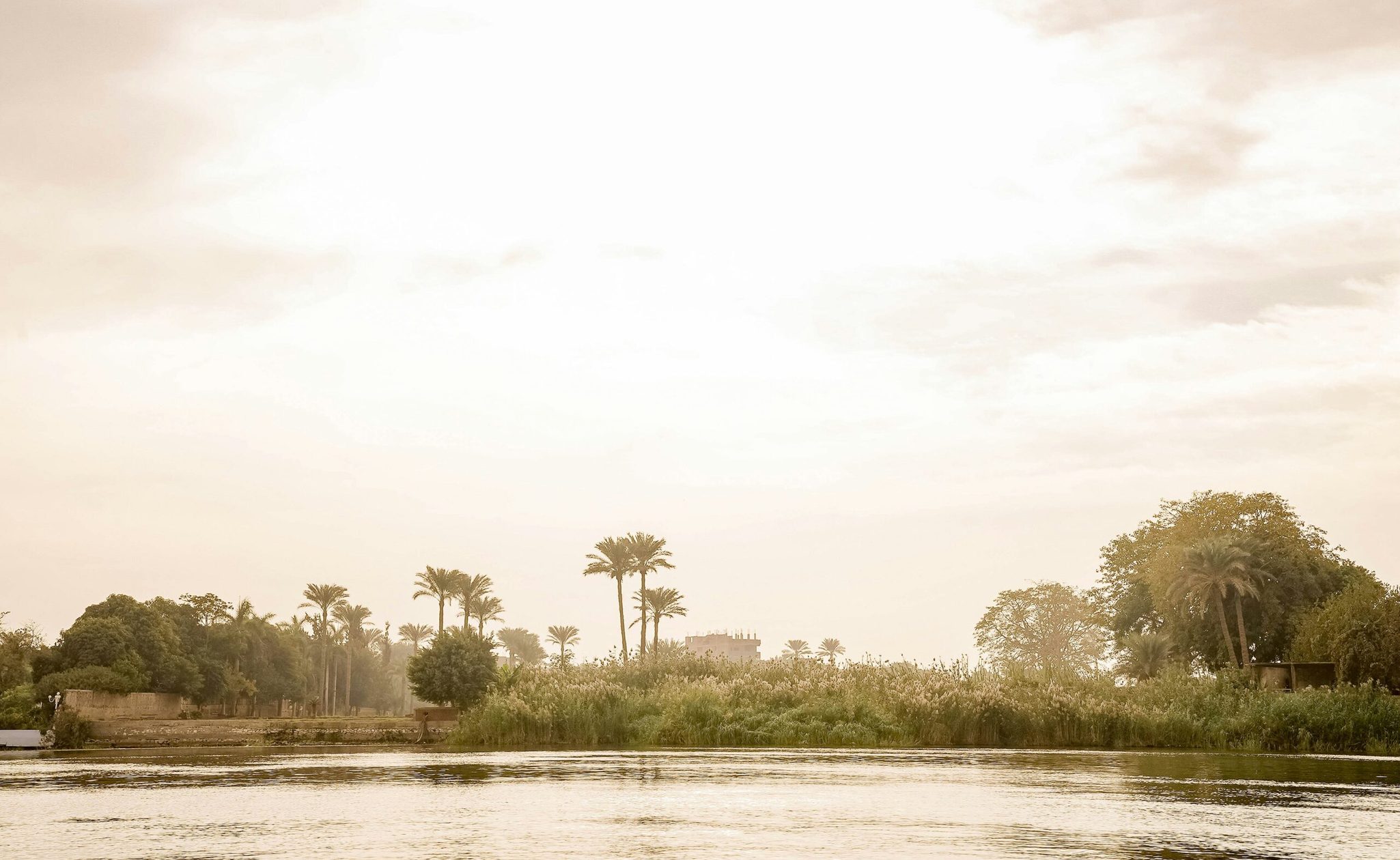 His cheeks barely landed on the pillow when he fell asleep. In our shared suite (it’s the only thing that made economic sense), my bed was across the room, close to the window. Before me spread the vista of the sun lowering over the river, turning the terrain, the water, and all the riches of southern Egypt, to gold.