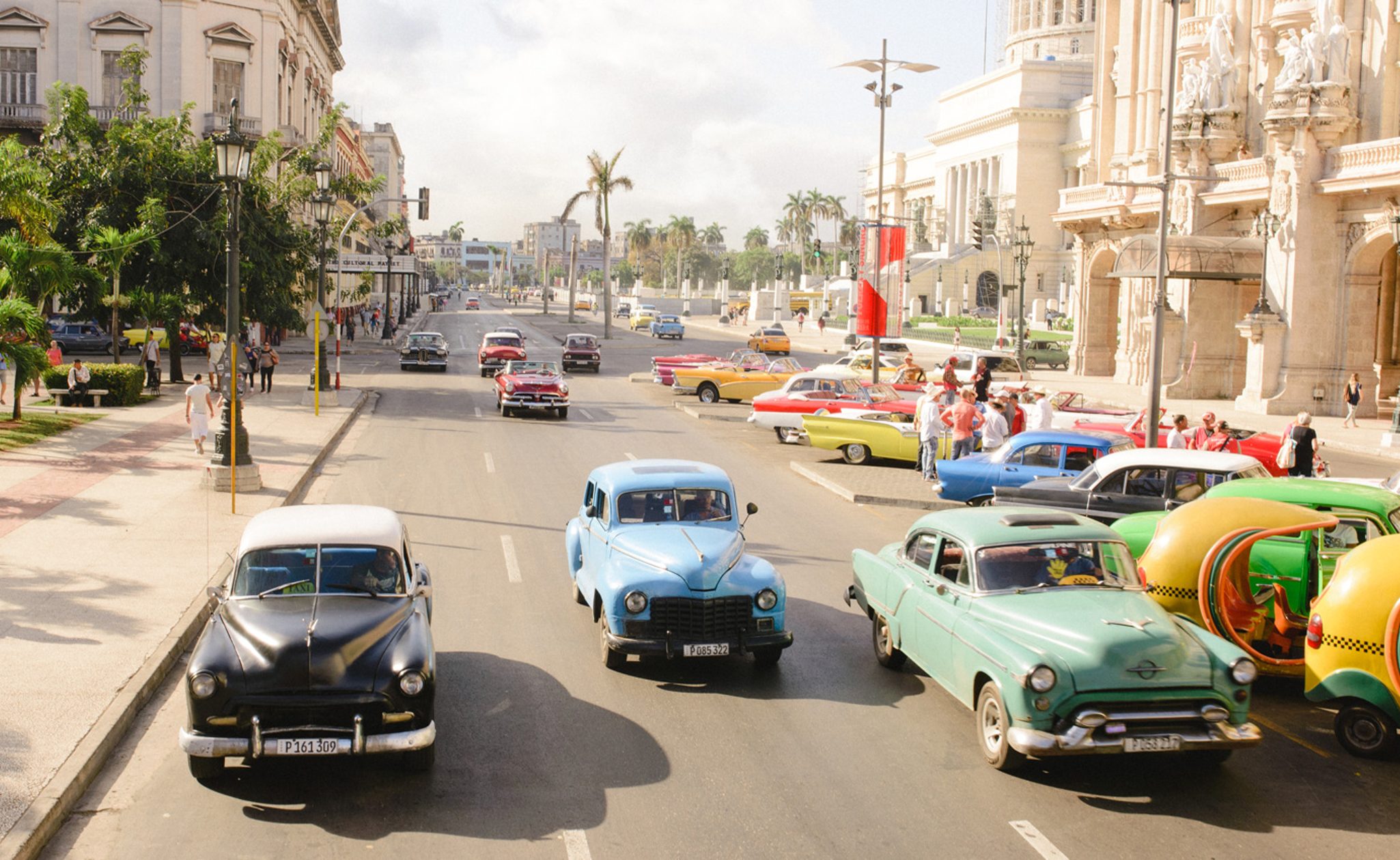 In the city’s historic centre, my ride awaits. I meet Henry – our guide and driver – on the vibrant, cobbled street outside our hotel, and take a seat in our very own antique Cadillac. Exploring in style, we stop off at laidback eateries, bustling plazas, and picturesque monuments. Catedral de San Cristobal, the Alicia Alonso Grand Theatre, Palacio de Los Capitanes Generales. Old, tucked-away bookshops and crowded bars. Local artist studios and colourful, vintage automobiles everywhere. Havana is a fascinating blend of past and present. Of style and tradition. A place of charismatic charm and vivid colour – and you won’t want to miss it.