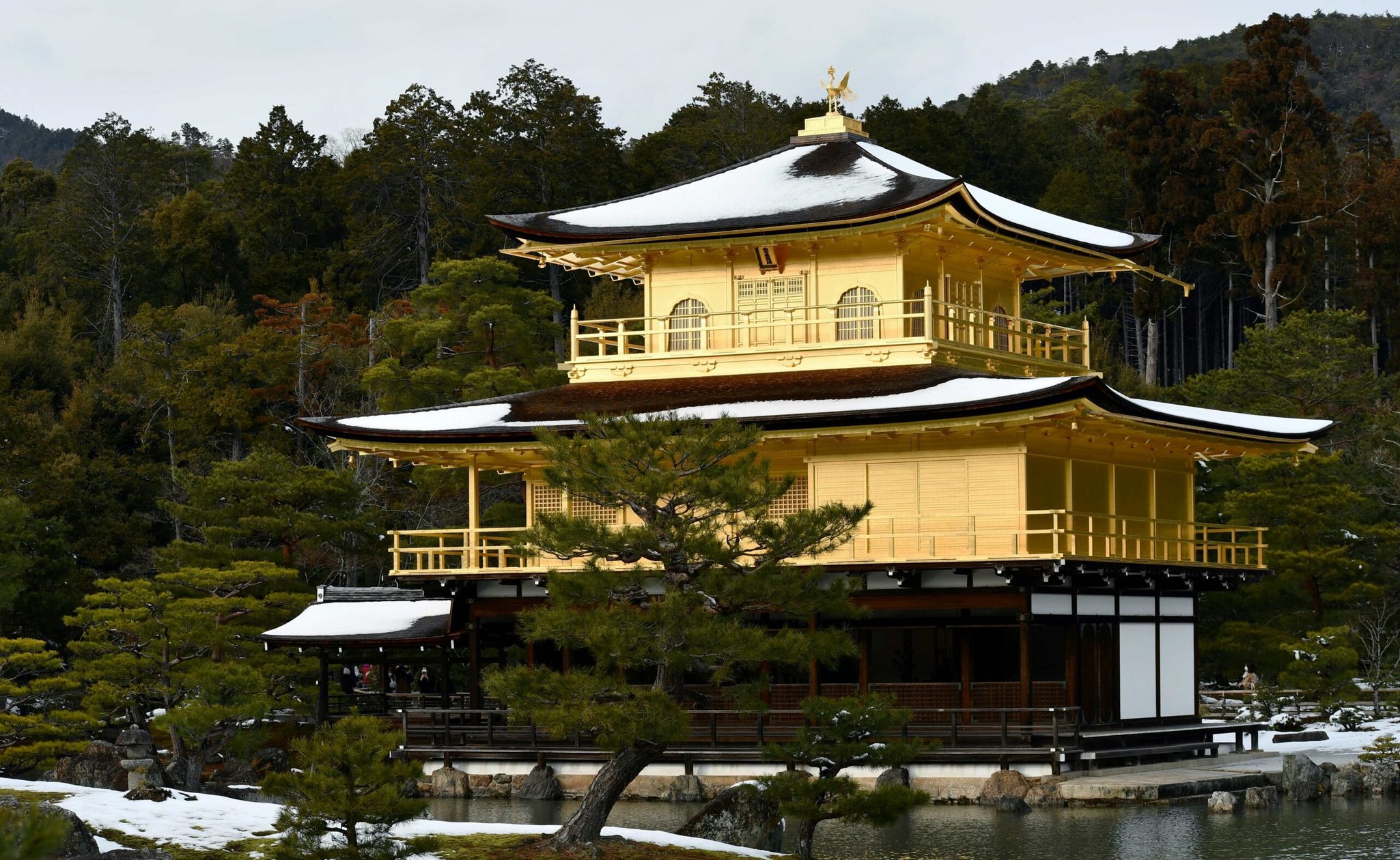 After a tranquil morning in this beautifully minimalist and scenic space, we meet up with Tammy, our local guide. An enthusiastic and lovely host, she takes us to see the Golden Temple – an echo of the extravagant Kitayama culture once popular among Kyoto’s aristocratic circles. Ornately coated in gold leaf, lightly covered with a sprinkle of snow. We’re lucky, she says – of the hundred plus times she’s been there, this was only the second time she’d seen it in the snow. Here, people throw coins at statues for good luck and the impressive temple overlooks a large pond peppered with ten small moss-carpeted islands. Tall pine trees rise, representing permanence and longevity, while circular pathways wind their way through the surrounding gardens, signifying enlightenment. Two very important symbols in Japanese gardens, we’re told.