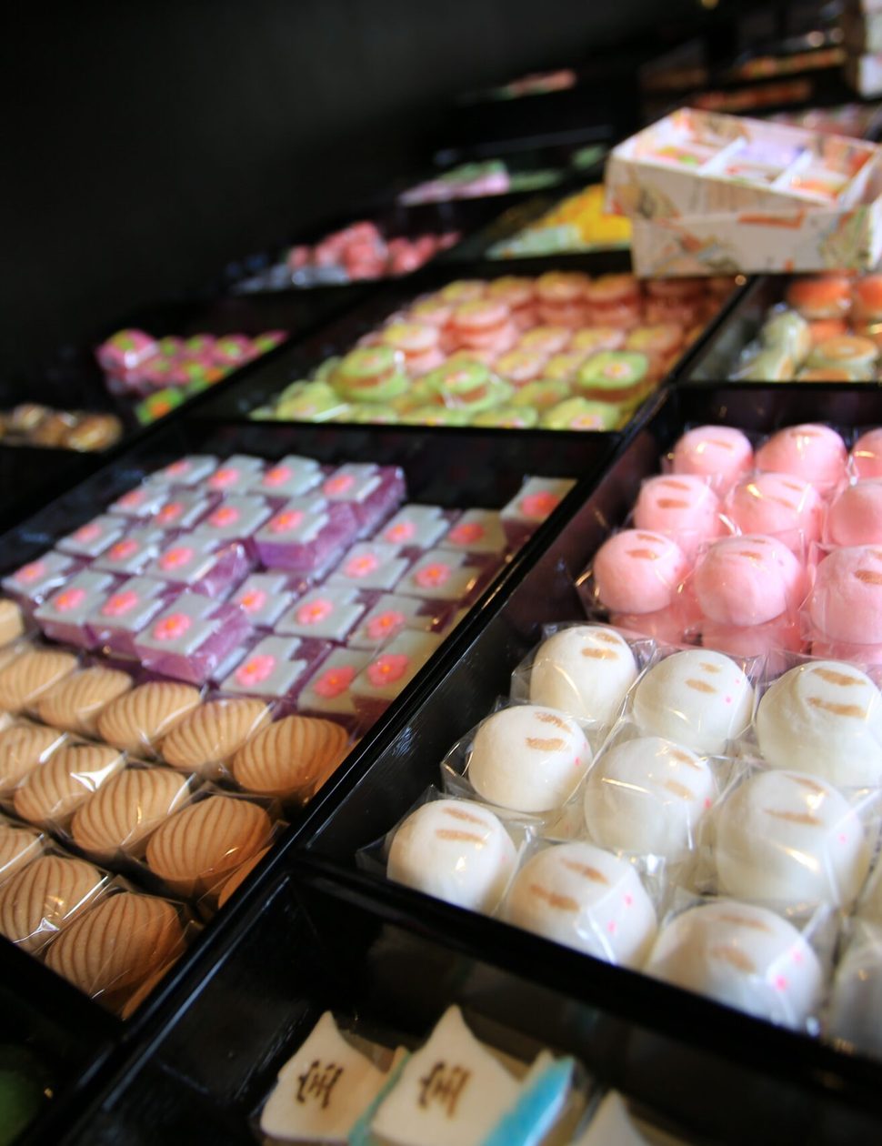 Fed and watered, we meet up with Sue – our local food guide in Kyoto. Previously a professor in Osaka, we soon discover that she lived in California (my husband’s home state) for two decades. It’s a small world. The kids instantly take to her and become firm friends – but that might also have something to do with the fact that she’s going to show us where to buy the best sweets in town. A treat-finding treasure hunt, if you will. My husband is equally excited – having been craving some specific Japanese puffed corn snacks (Umaibo) for a while now. And our guide is only too happy to oblige.