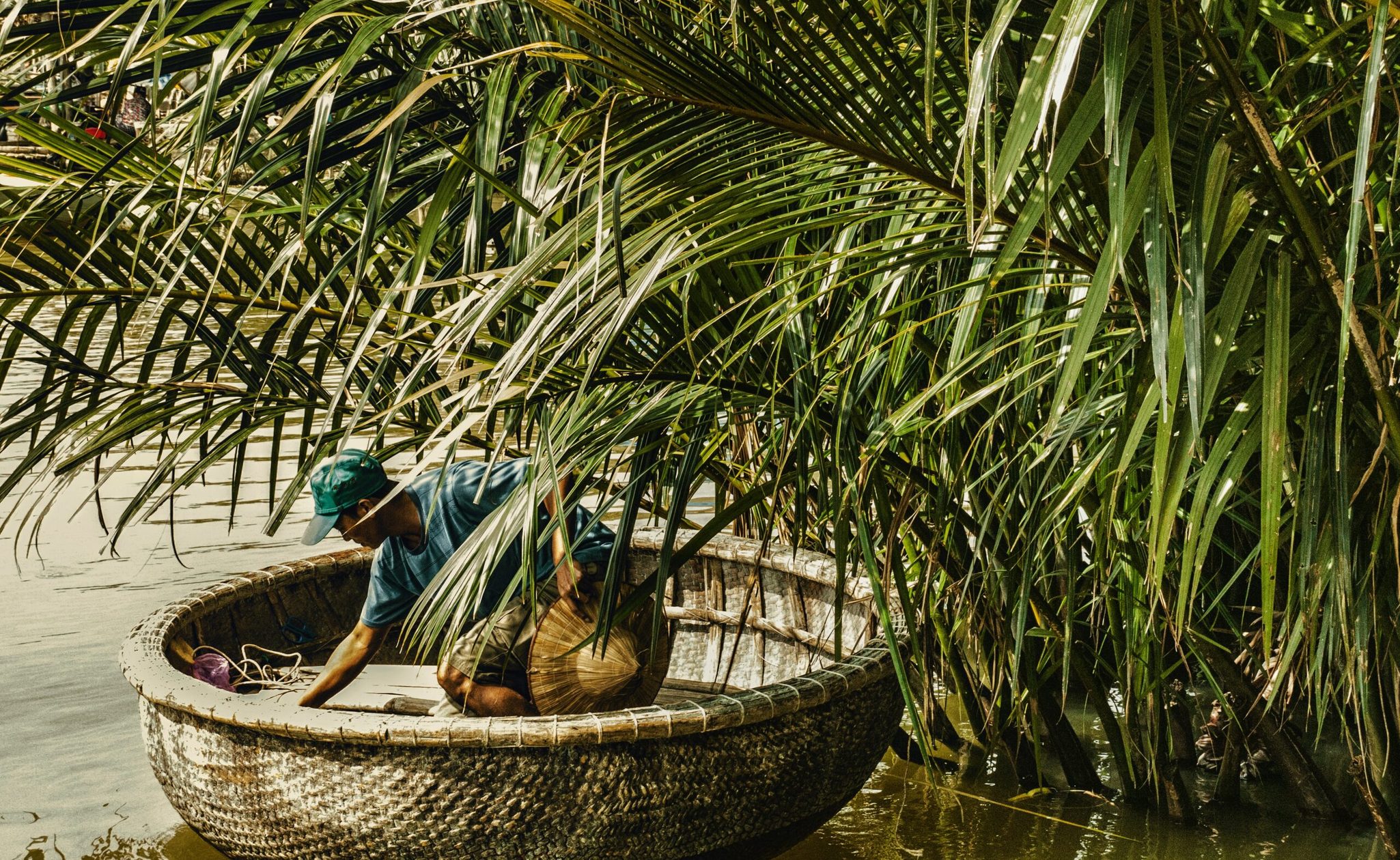 Vũ had taken us to meet the captain about ten minutes beforehand, along with his helmsman, helping us aboard their traditional wooden fishing boat as they smiled and shook our hands in welcome. Pulling away from the shore, we passed rivers flanked by reeds and navigated by bamboo boat as we headed towards the South China Sea. There was nobody about, bar a few local fishermen at work, whom we were soon to meet.