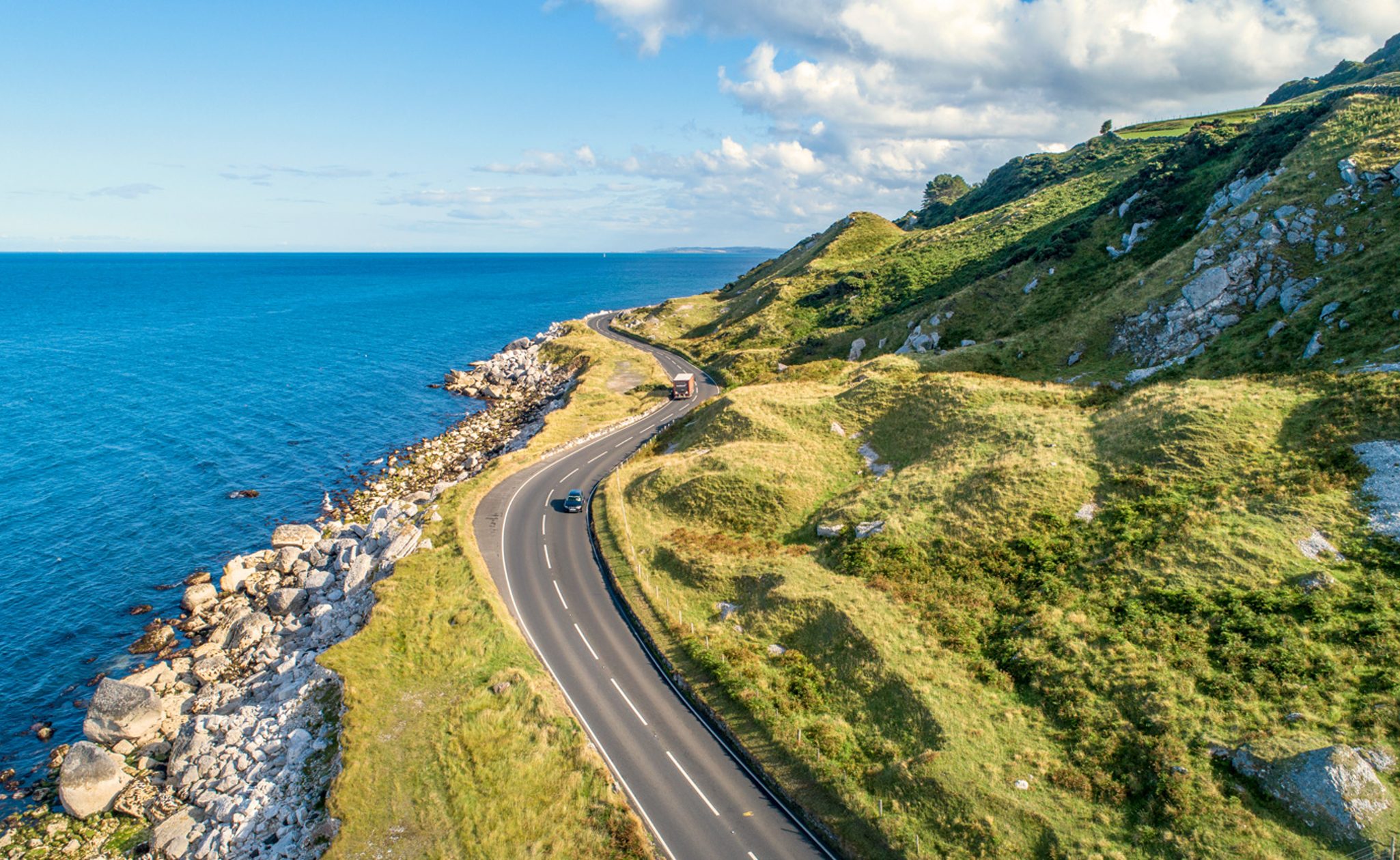 Across the border, you’ll wind your way through the sea stacks and rugged wilds of Co. Donegal. Home to Europe’s tallest sea cliffs – the Slieve League – here, quartzite slopes plunge into the Atlantic Ocean from a sheer drop of 2,000ft. It’s up to you how far (and high) you go. Our route of choice? Cosán an Oilithrigh, or Pilgrim’s Path – a four-kilometer ancient hiking trail that takes you through horseshoe-shaped valleys, waterfalls, and mountains. But whichever trail you choose, the views are sure to take your breath away. In the best possible way.