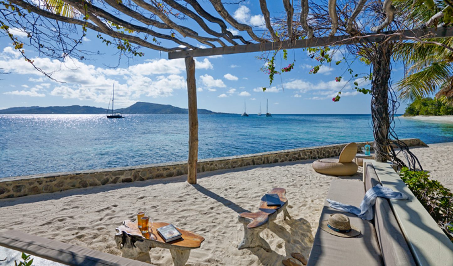 Drink-in the Caribbean beauty at Petit St Vincent’s beach bar.