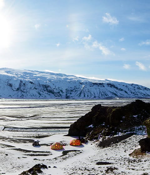 For an epic adventure in Iceland, the dramatic backdrop of the Þjórsárdalur Valley makes for a perfect camp base. From here, you’ll take helicopter journeys across volcanic craters, horseback rides to secret lagoons, snowmobile safaris across glaciers and after-hours access to the Blue Lagoon.