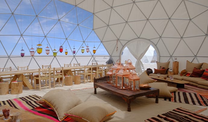 Stretching for 11,000sq km, the Salar de Uyuni is the world’s largest salt flat. A shimmering landscape of bright-white salt, rock formations, and flamingos. It’s also one of the best star-gazing locations in the world. The flat and expansive landscapes are perfect for our Dome Tents that offer guests space and serenity and seamlessly blend in with the stunning salt plains.