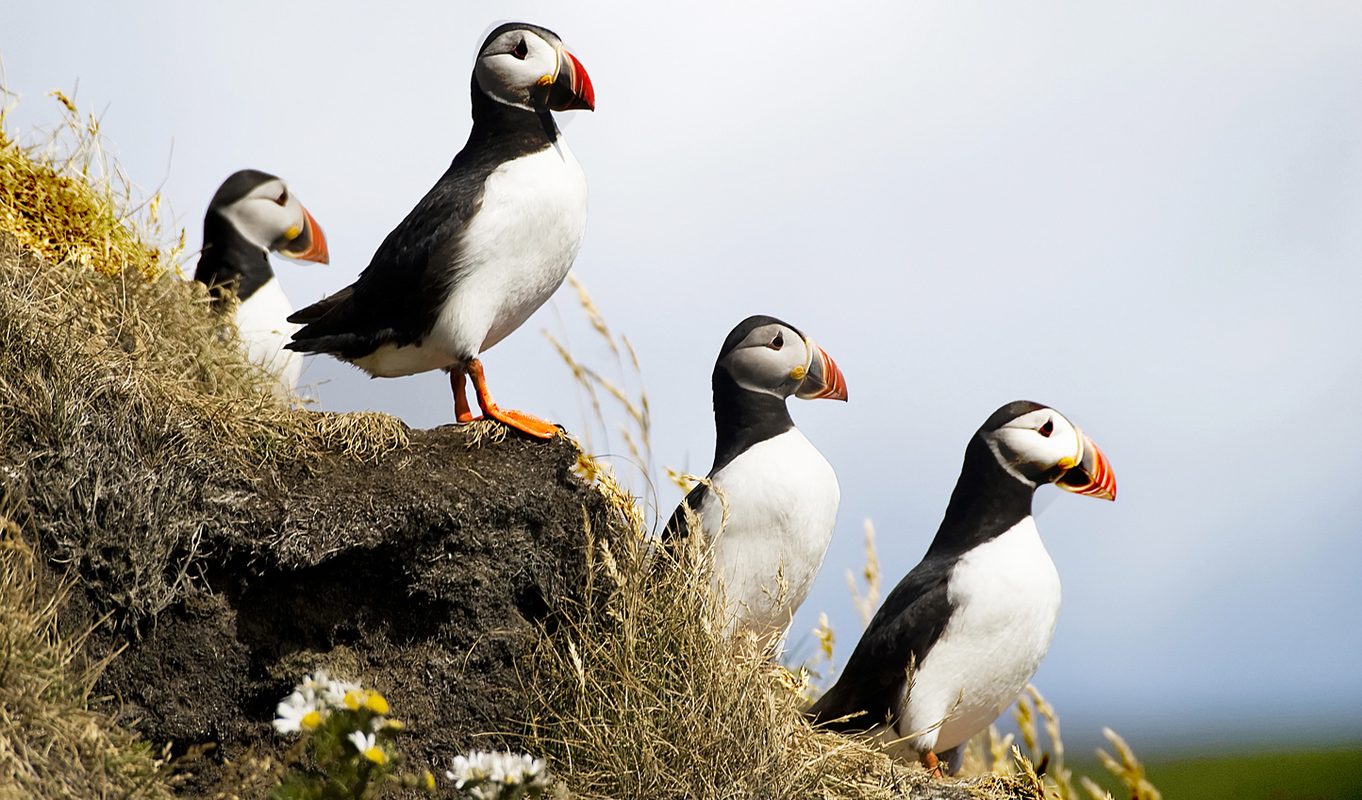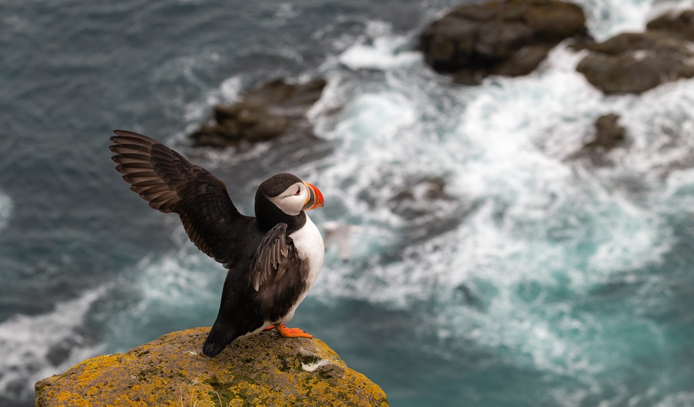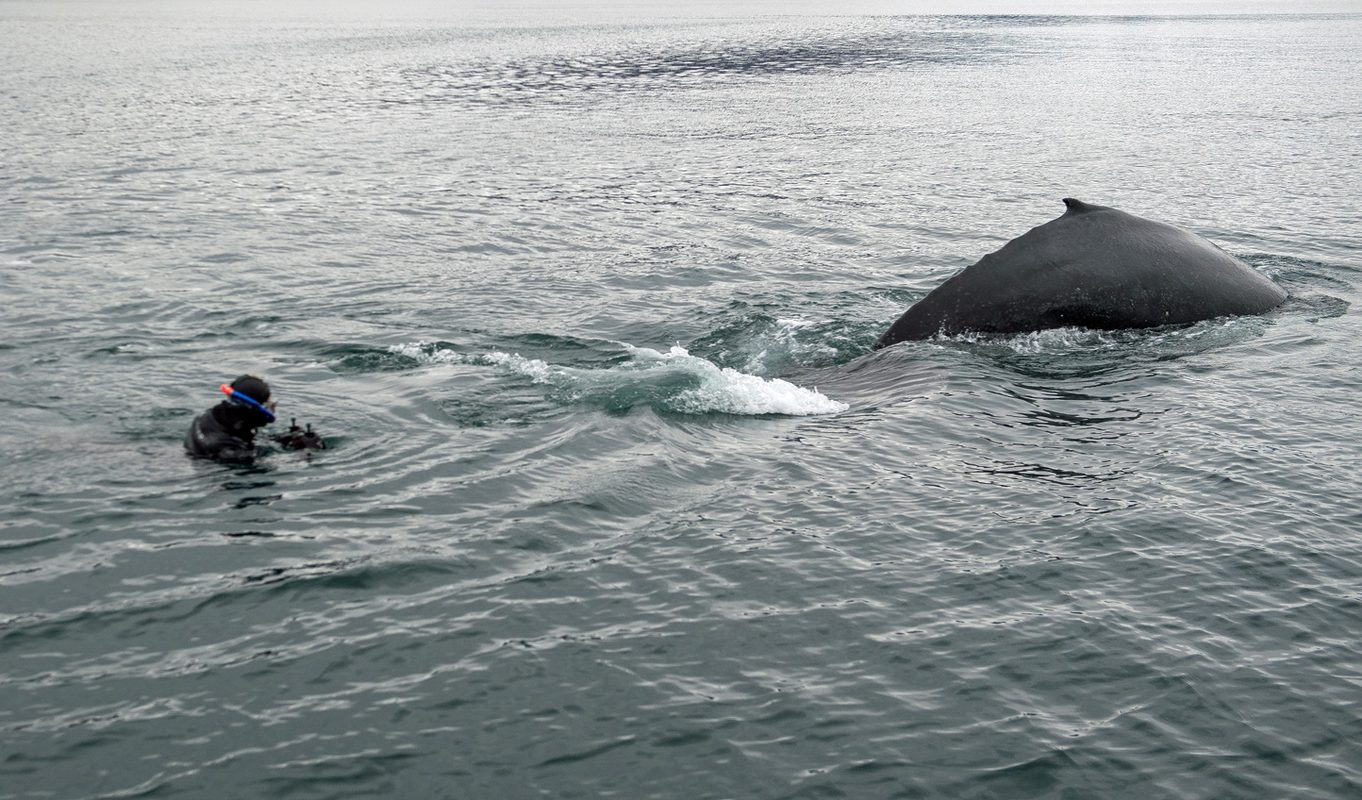 You’ll also venture out to the arctic island of Grimsey. Some 25 miles off Iceland’s north coast, and straddling the arctic circle, this remote island is a haven for aquatic wildlife with rich kelp forests carpeting the ocean floor. Clad in a dry suit, we’ll anchor in the secluded sandstone cove of Básavík where you’ll take to the water in the company of an expert marine guide. From this vantage point, you’re poised to capture the spellbinding sight as the puffins dive off the cliff-face into the water in search of their next meal. Fun and playful, it’s the perfect way to prepare for your encounter with the humpbacks the following day.
