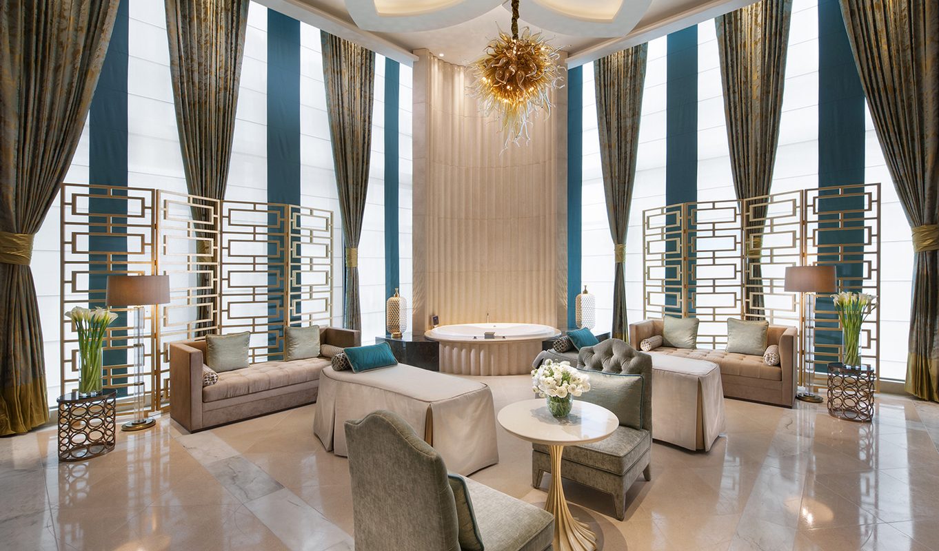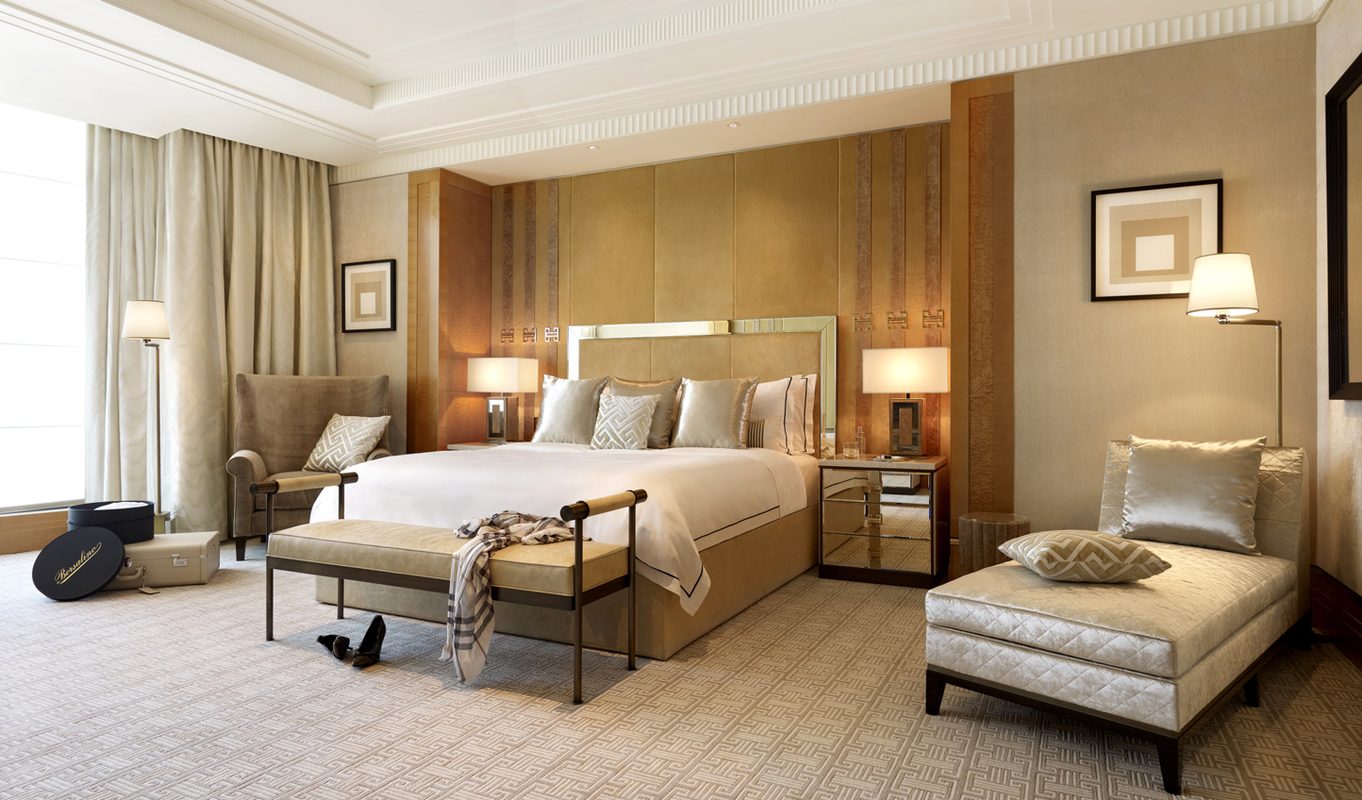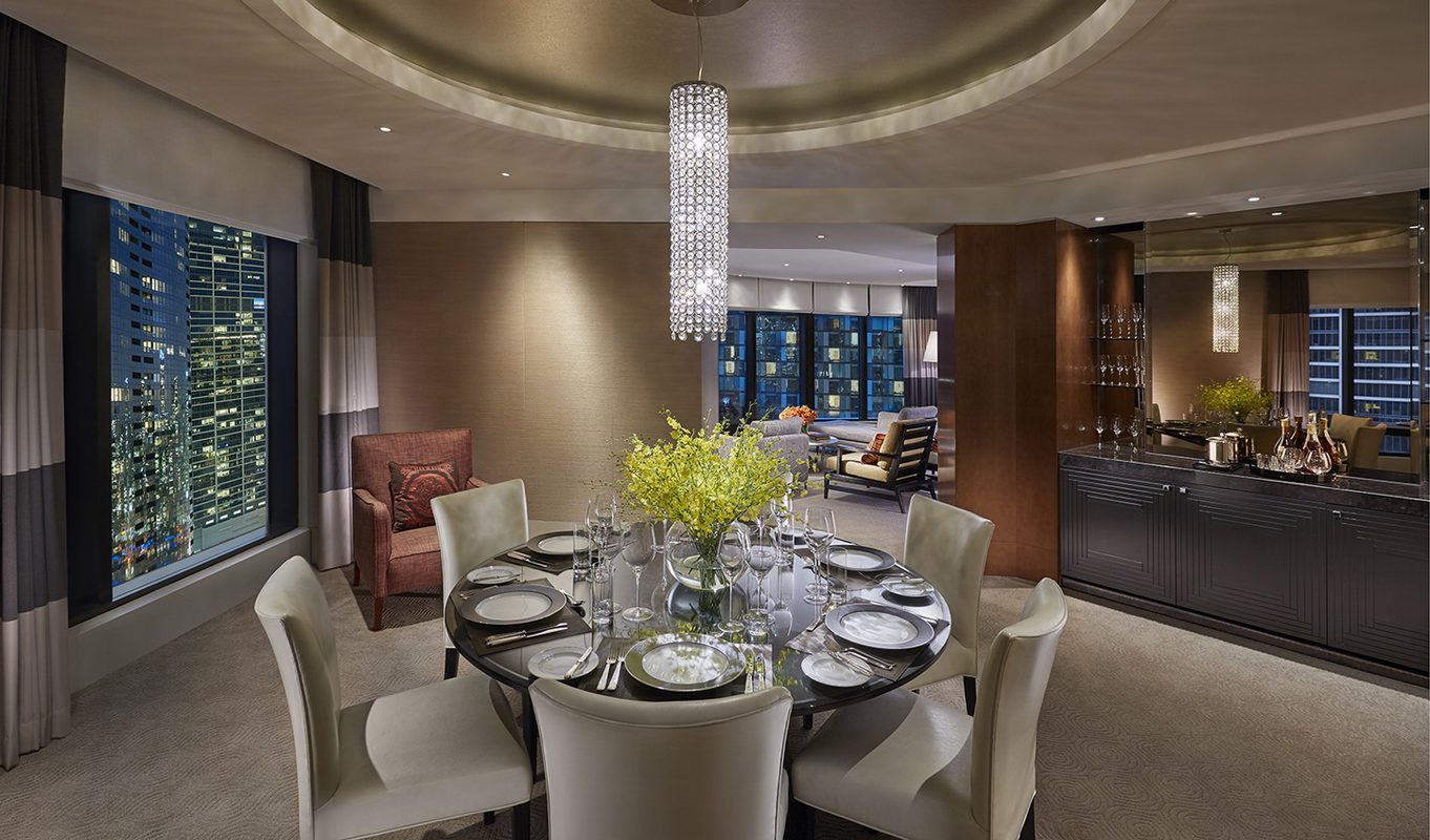 Subtle elegance reigns supreme here with light pouring in through floor to ceiling windows and a color scheme dressed in nude tones. The style is decidedly contemporary with soft curves and leather accents whilst the ensuite bathrooms add further opulence. Head to toe marble with a deep soaking bath and lit by crystal chandeliers; this is a room designed to pamper. For an added touch of indulgence, head up to 30th and 31st floors and check into one of the villas where you’ll discover a sense of that penthouse feeling as you look out over the city before you.