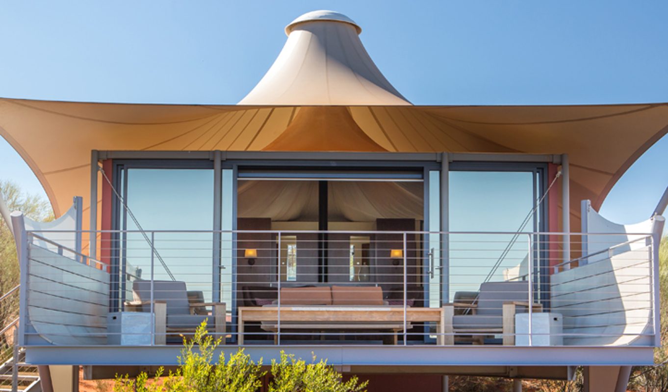 Stay in one of 16 luxury tents and turn your attention to views over Australia’s most stunning landmark: Uluru. Nothing has been spared to make sure your stay here is the ultimate in luxury, with rich dark woodwork, cream walls and soft fabric draping across your ‘tent’ ceiling, you really feel like you’re camping in the wilderness, except you’re in absolute comfort. Lie back in your lush king sized bed and flip a switch to open your blinds up for what we think will be one of the most amazing sunrises (or sunsets if you’re not an early riser) you’ll ever see. If you want to dial the experience up a notch though? There’s always the option to grab a swag and sleep out beneath the stars on your private deck. A magical moment not to be missed in our opinion.