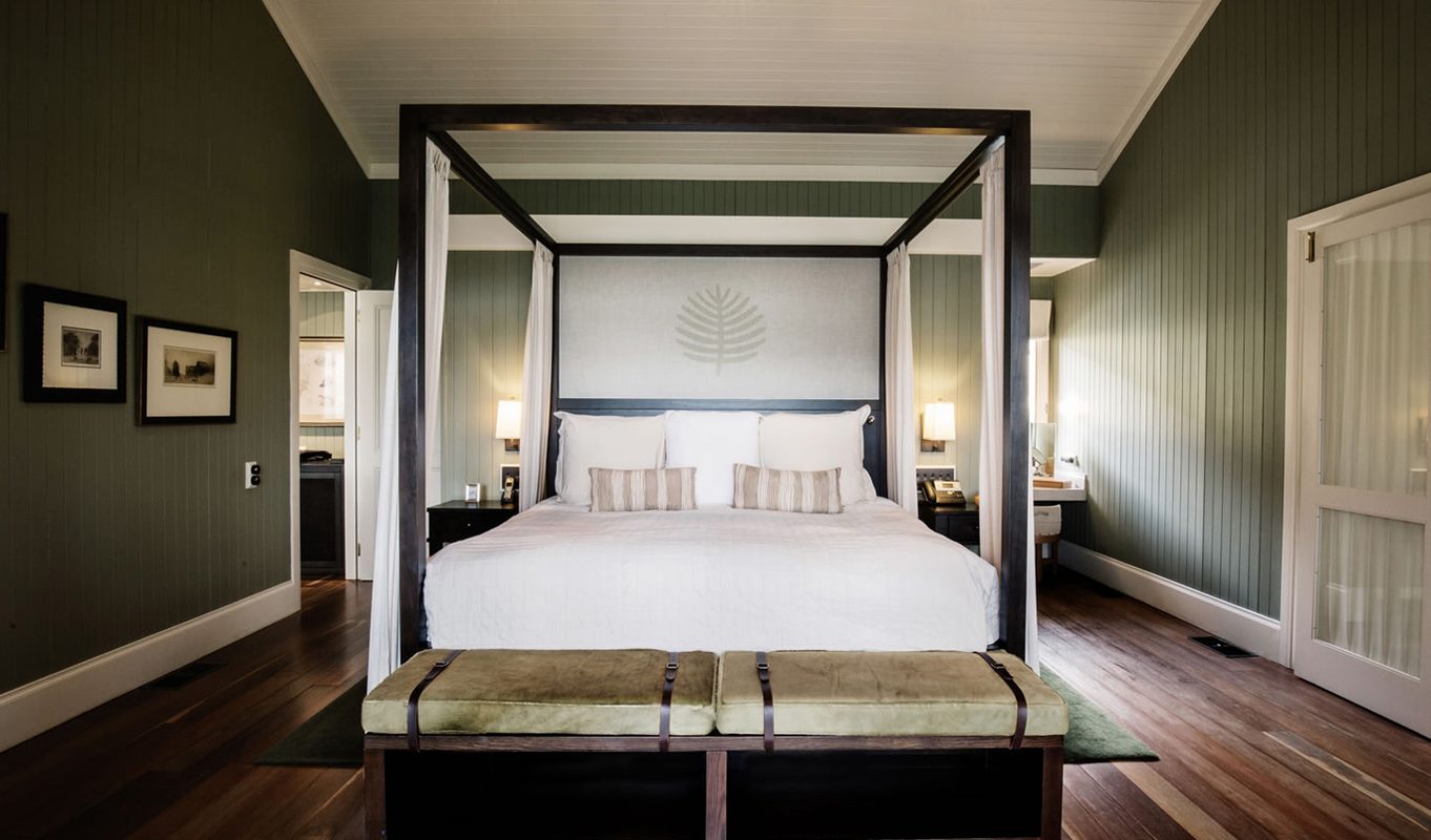 The heritage suites’ wood and stone materials seamlessly blend luxury into these stunning natural surroundings whilst your private pool, complete with a deck and wrap-around veranda, takes you into it. Inside boasts a large living room and bathroom with luxurious touches including a double-sized fireplace, king-sized bed and two mountain bikes for you to cruise around the wilderness as you please.