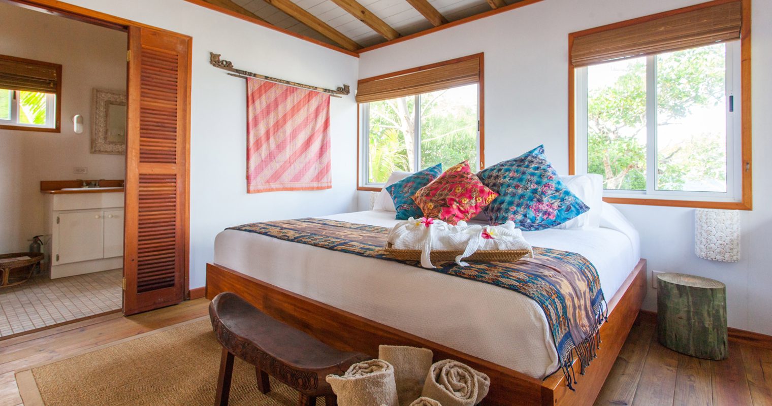 Hosting up to ten guests across three colorful dwellings, Coral Caye leaves the invitation list to you. The shell-adorned Great House serves as a laid-back living/dining space, with two further cottages providing cozy bedrooms and hammocks strung between nearby palm trees. Resident caretakers Alberto and Paulina prepare delightfully honest meals of fresh-caught seafood and traditional Creole dishes and can organize a number of add-on services such as guided fishing tours and a private attendant.