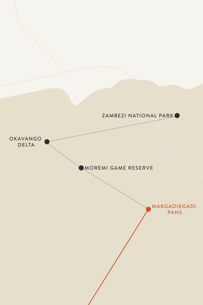 It’s impossible to put into the context the sheer scale of the Makgadikgadi Salt Pans – the world’s largest network of of their kind. This rarely-seen region is special all year round. In the dry season, the sun-baked salt virtually glitters. When the rains come, from November to April, it’s filled with flamingos, waterbirds, and one of Africa’s largest zebra populations.