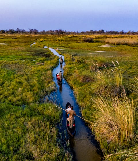 The Okavango Delta: a rich-green tapestry of waterways, floodplains, and crystal-clear channels, and one of the most nutrient-rich ecosystems on the planet. This is a see-it-to-believe-it place of prolific predator populations, incredible bird-spotting, and extraordinary community concessions.