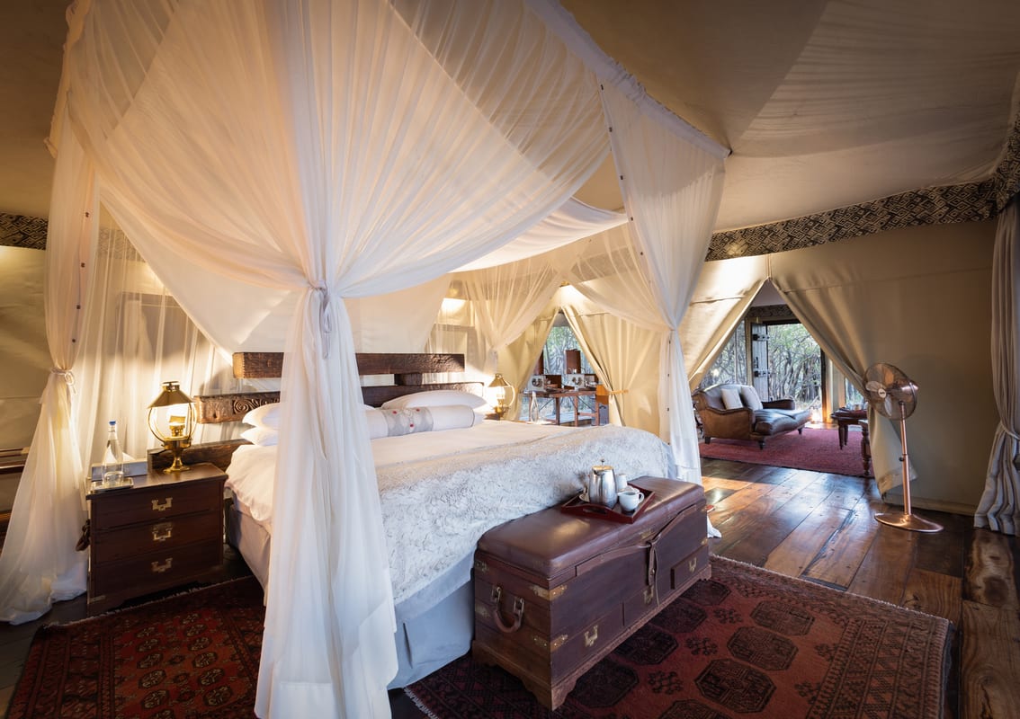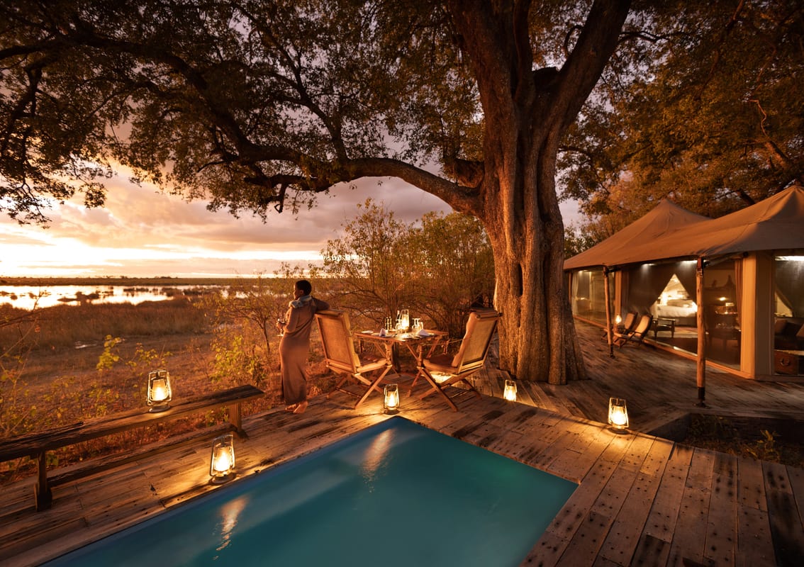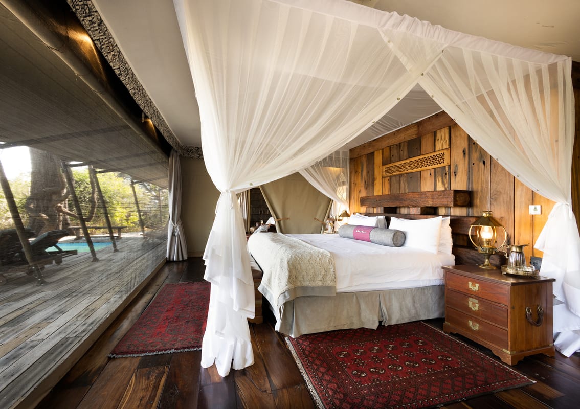 Zarafa Camp, on the edge of the Zibadianja Lagoon, evokes a sense of old-style safari with its four large, luxurious double or twin ‘marquis style’ tents. The camp only sleeps eight at any one time so you can really get an exclusive taste of Africa and get the incredible wildlife all to yourself.