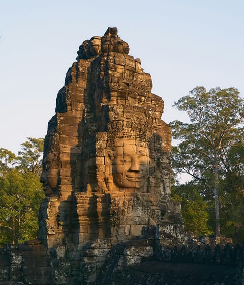Leaving land behind, you’ll set sail across Tonle Sap Lake. Gliding over tranquil waters, you’ll explore the floating village of Mechrey; marvelling at houses built on bamboo rafts and meeting the Khmer fishing families who call them home. Next, your expert guide will take you to Angkor Thom (or the “Great City” as its also known). Exploring this 12th-century city on foot (and then by boat), you’ll discover the giant carved faces of Bayon Temple before crossing the “cosmic ocean”, a vast waterway system designed to represent the meeting of the divine and the mortal.