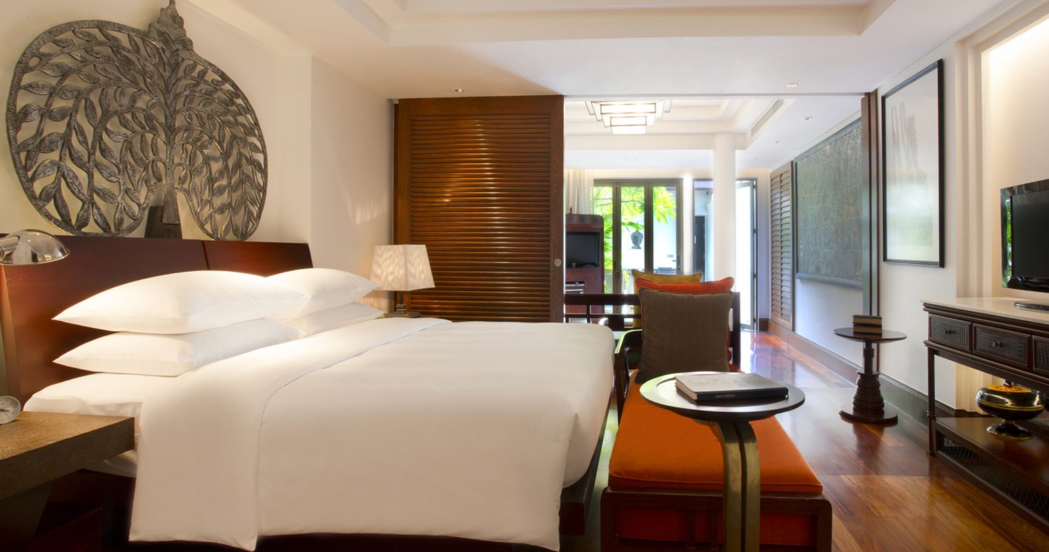 Sophisticated and elegant, with a touch of Khmer heritage, the 104 rooms and suites at Park Hyatt Siem Reap offer a luxurious space to retreat to. Featuring king-sized beds as standard and decadent Italian marble bathrooms, you’re guaranteed all the comfort of the modern world whilst enjoying the splendour of this ancient land. For added decadence, opt for a suite and sprawl out in your private garden and swimming pool.