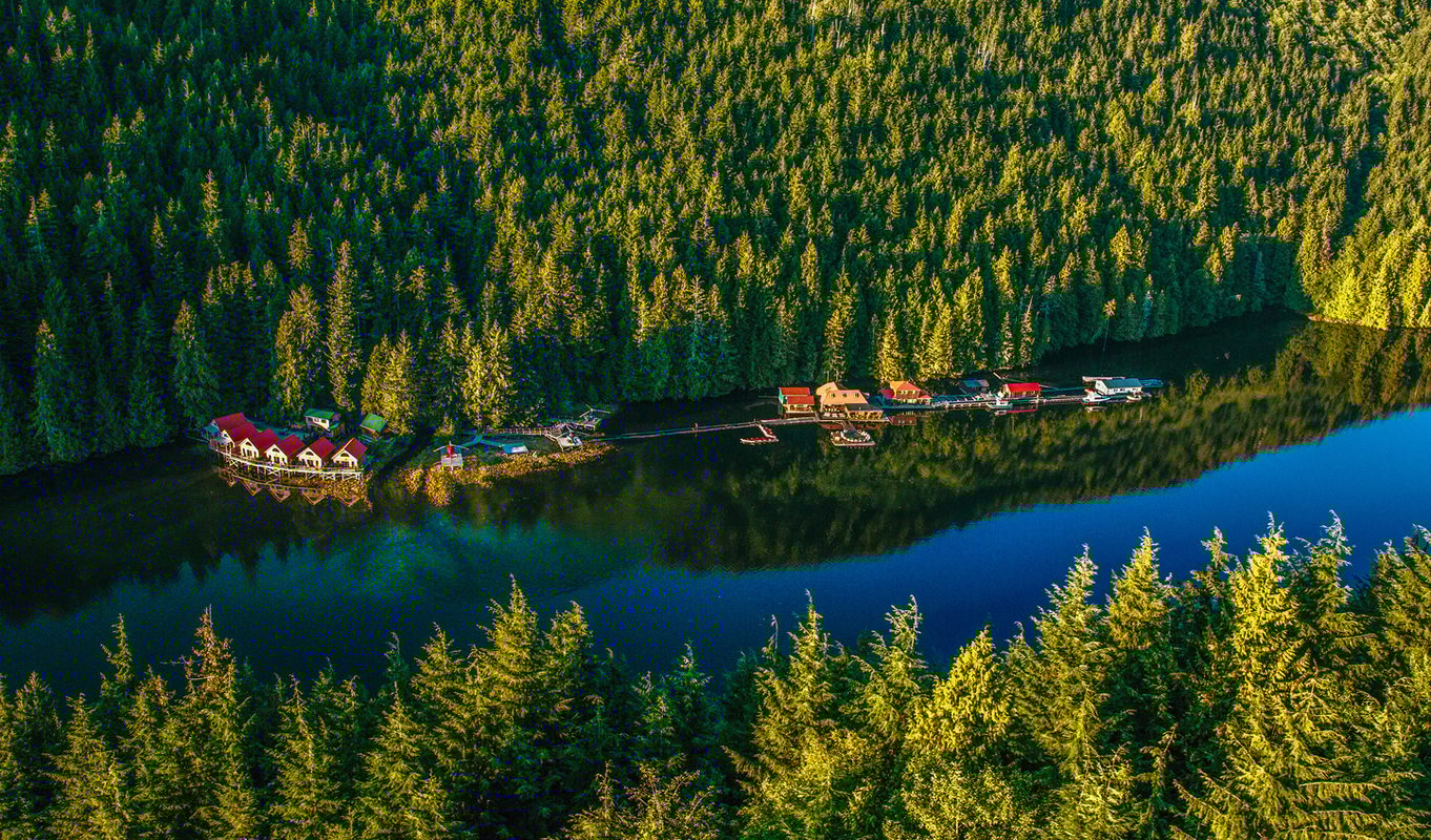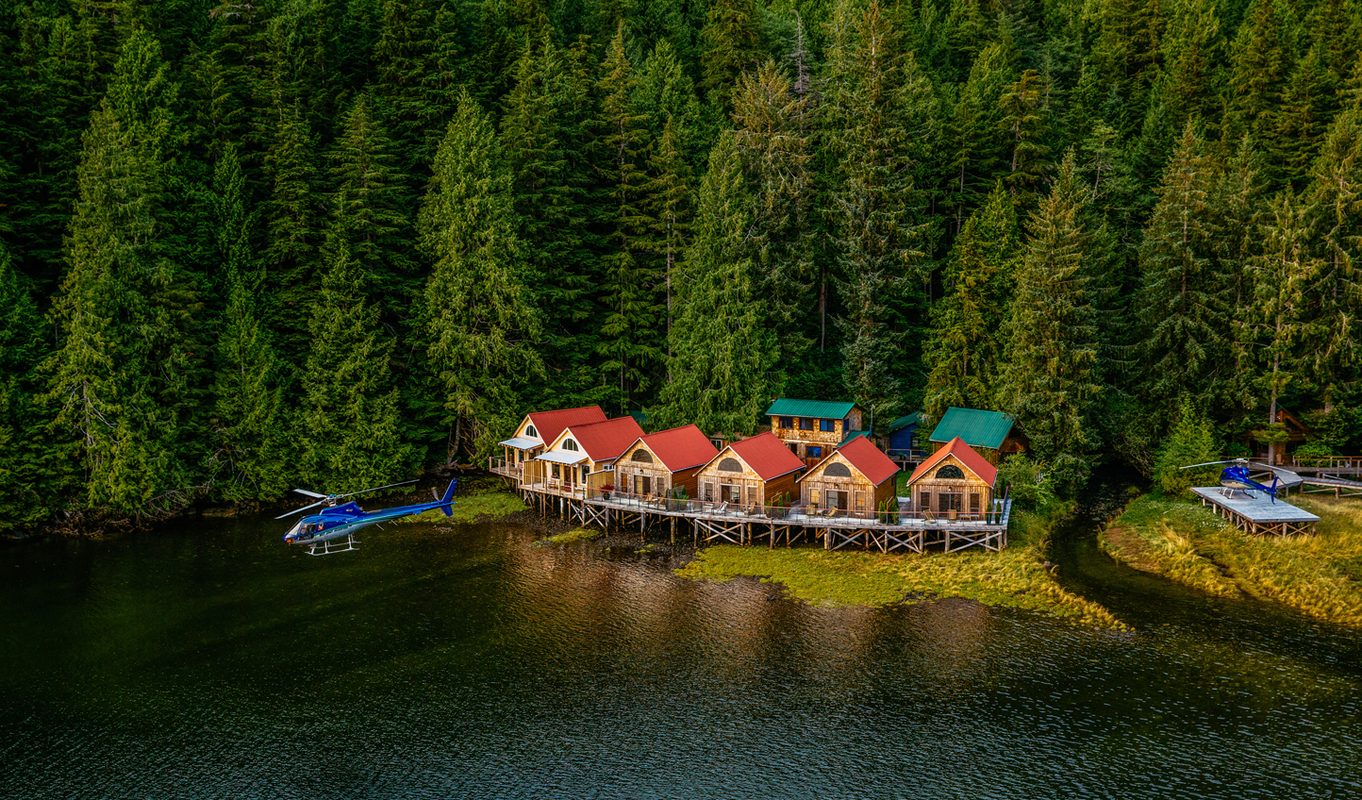 The remote Nimmo Bay can be found floating peacefully on the waters of the mesmerising Great Bear Rainforest on the coast of British Columbia. Accessible only by air or water (there are no roads in the area), this is a real escape to the wilderness where getting there is only part of the adventure. From Vancouver International Airport, it’s a one hour flight to Port Hardy from where it’s just a short 20 minute hop, on board either a helicopter or float plane.