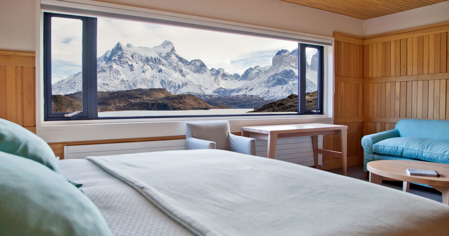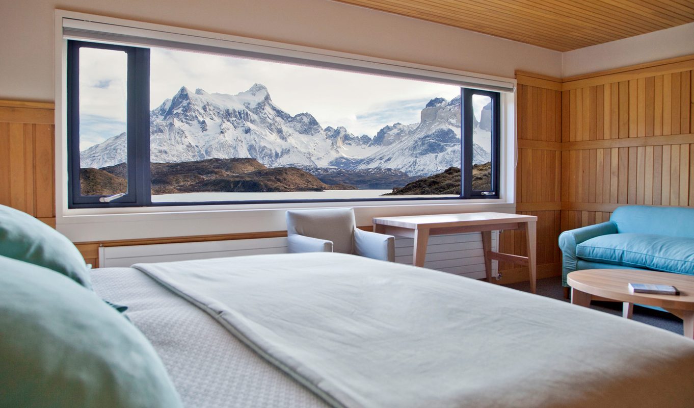 All 49 rooms come complete with captivating views and a peaceful intimacy thanks to their no TV rule. The sophisticated design incorporates native lenga wood and cypress brought from the Guaitecas Archipelago, enhancing the lodges natural vibe. Each room has a small living area, hydromassage bath and beds designed for a deep sleep after a day of exploration.