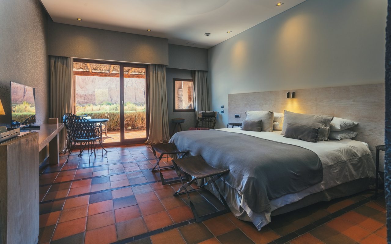Drawing inspiration from the local Andean culture, each of the hotel’s elegant rooms and suites is decorated with handwoven throws, macrame hangings, and natural materials. Looking out at spectacular views of the Salt Mountain Range and the Andean hills, you’ll listen to the sounds of the San Pedro River as you step out onto your private terrace and feel the warmth of the Atacama sun.