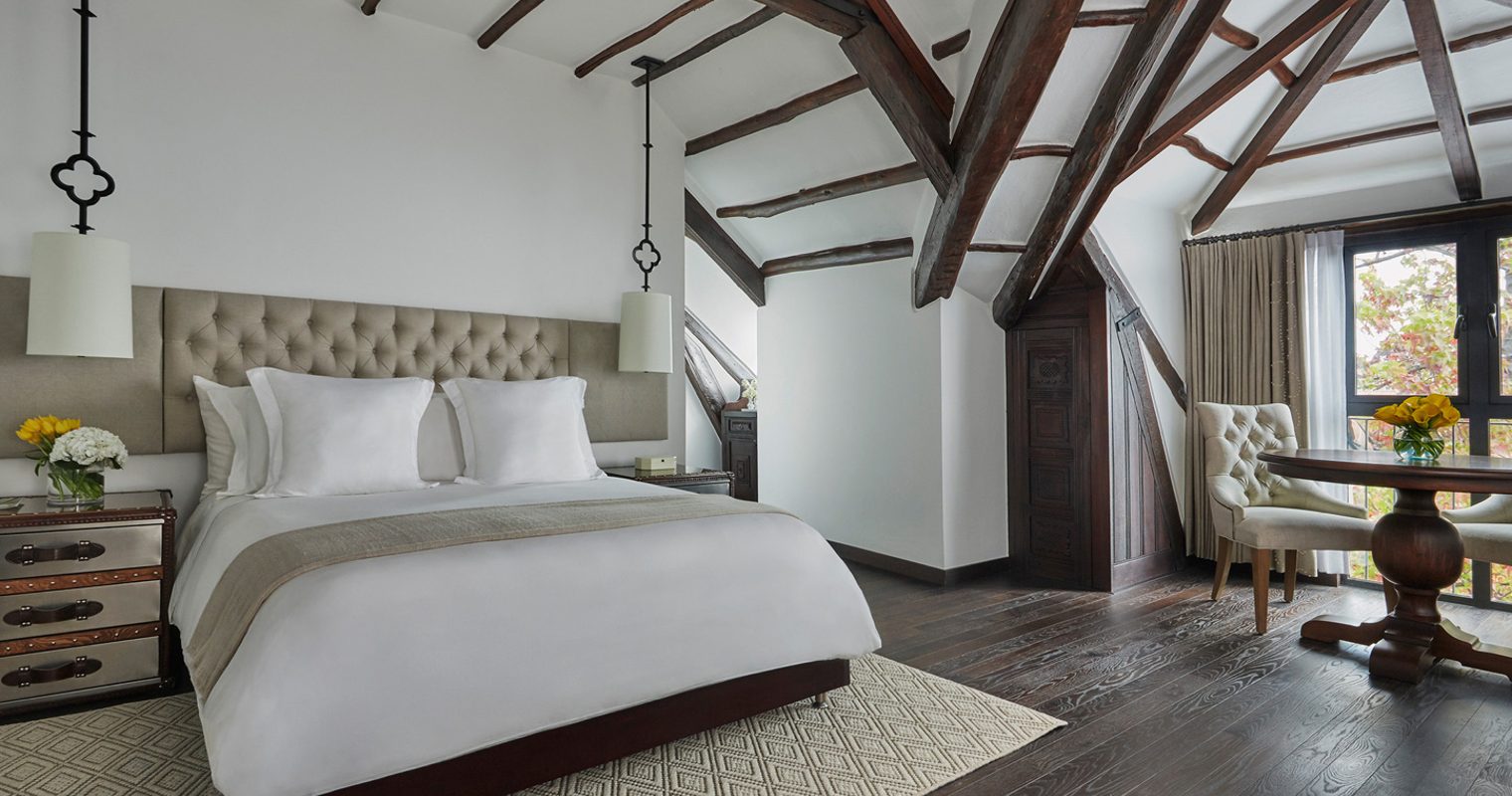 Renovated in 2015, Casa Medina remains true to its origins, retaining wooden beams, wrought-iron accents, and handcrafted doors. Each suite is furnished with aged leather seating, custom white linen, and vintage trunk-style tables. Both the Penthouse Suite and the One-bedroom Suite contain an impressive fireplace and fifth-floor city views. Regardless of suite selection, every room is a comfortable and sophisticated retreat for a stay in Bogota.