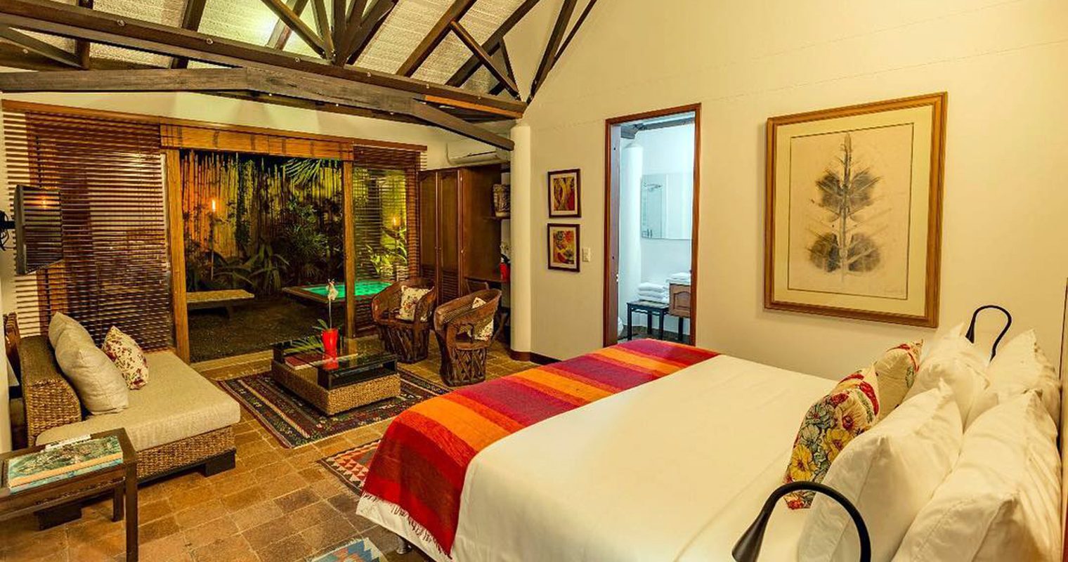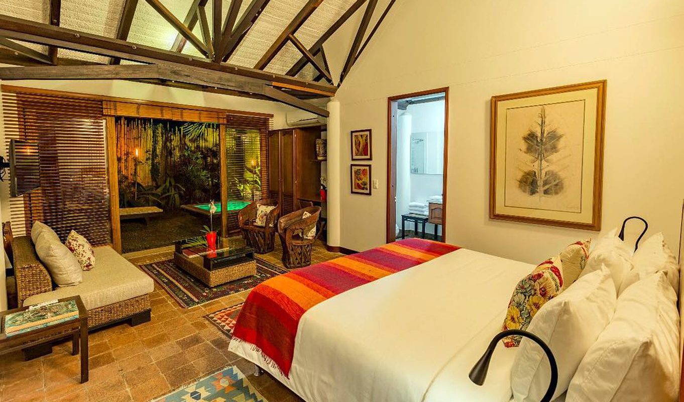 Sazagua’s rooms have something to suit everyone’s taste from hammocks to private plunge pools to private balconies. For those of you looking to live in the lap of luxury the Principal Suite is where you should head or for something cosier, a standard double is the perfect fit. Either way, you’re guaranteed some beautiful local artwork adorning the walls and bold colors all around.