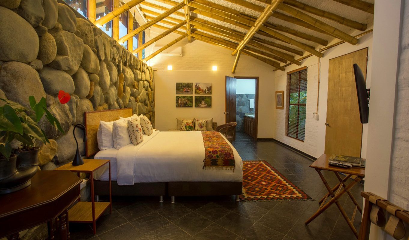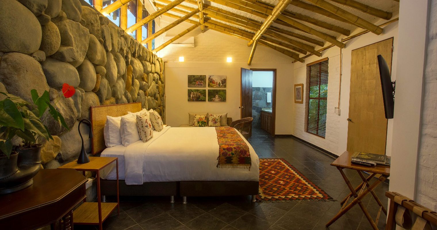 Paying homage to the region’s Quimbaya civilization with its name, Sazagua Hotel Boutique is a charming boutique hotel in the heart of Colombia’s stunning coffee region. The hotel reflects the early coffee history through its colonial architecture by using wooden structures, wide corridors and vivid colors. With just 12 rooms and three villas, the hotel is still larger than life and is surrounded by beautiful gardens full of tropical flowers and unique birds and has a spa made from giant river rocks. Where else can you find that?