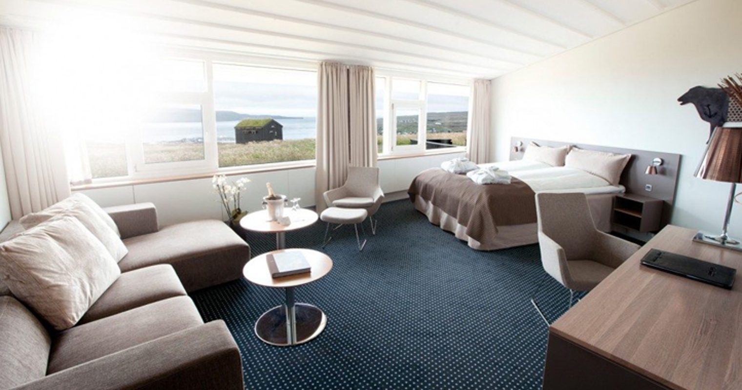 Hotel Føroyar is a showcase of Faroese design, with modern rooms furnished in neutral colors that allow nature to do the talking. And it doesn’t just talk – it shouts. All 106 rooms at this design hotel boast huge windows which offer panoramic views of Tórshavn and the neighboring island of Nólsoy. Perfect for watching the ever-changing weather fronts roll in and out. Aside from a hearty dose of the elements, these bright and airy rooms, of course, come with all the everyday mod-cons such as flat-screen TVs and WiFi.