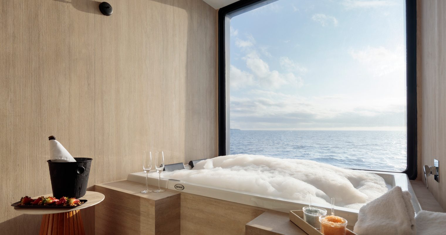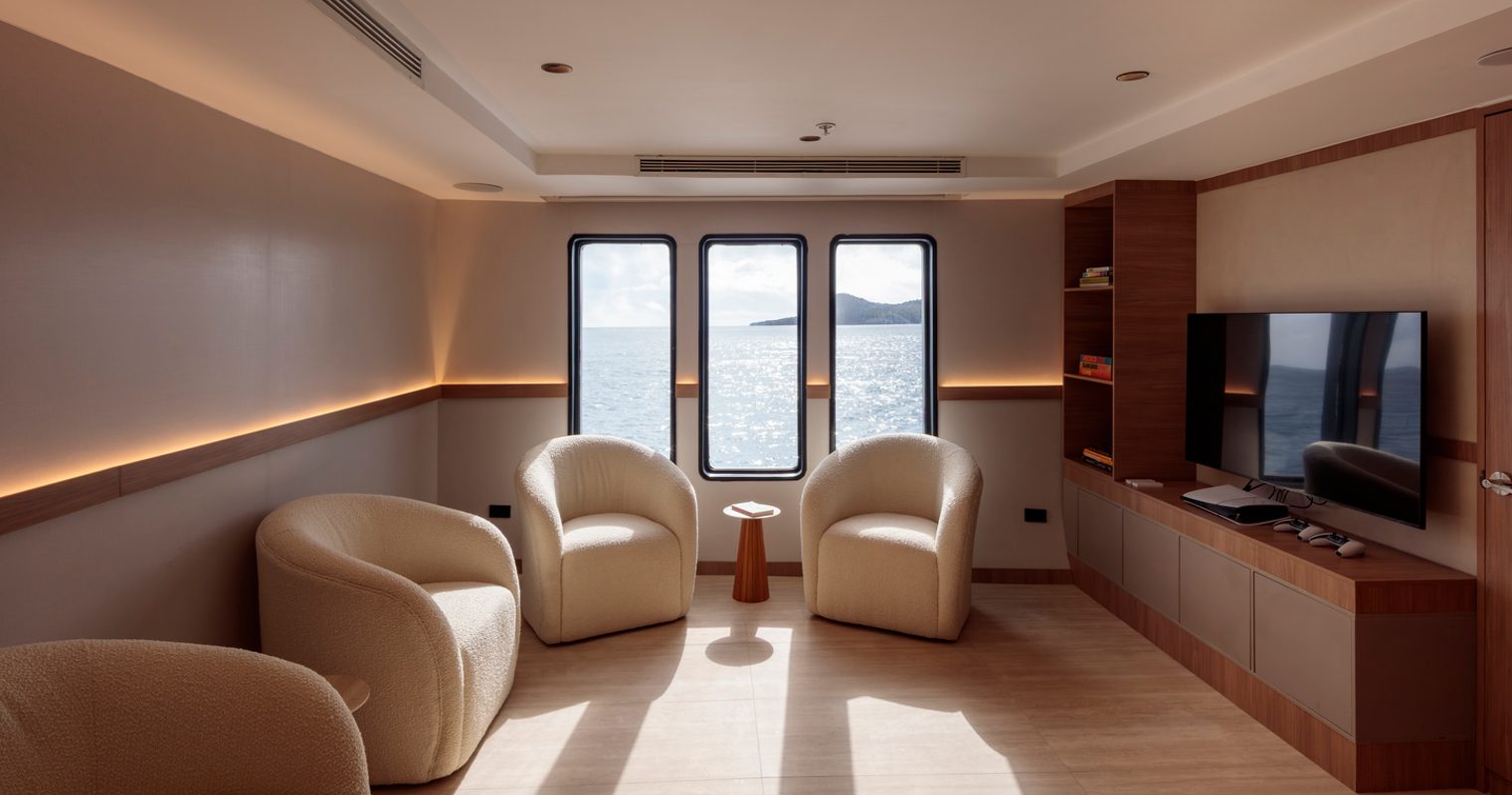 The Hermes welcomes children aged six and above, striking a perfect balance for multi-generational families. Older children join snorkeling adventures and paddleboarding expeditions while grandparents relax in the sundeck jacuzzi with panoramic ocean views. Honeymooners find romance in candlelit dinners on private balconies, butler-delivered champagne to in-suite jacuzzis, and sunset cocktails at the aperitif lounge. Adventure seekers revel in complimentary water sports equipment and dual naturalist guides who lead intimate groups of just 10 guests per excursion. The yacht suits anyone seeking the elegance and varied social spaces of a larger cruise ship – with a full-service spa and hammam, library, observation lounge, al fresco dining on the sundeck – with the intimacy of a boutique vessel.