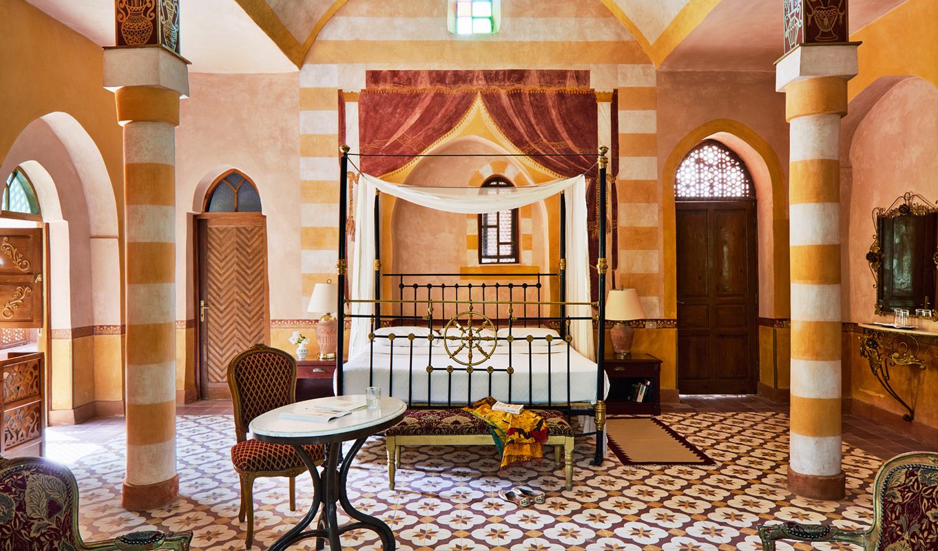 Beneath ochre domes, within hidden courtyards and at the gateway to the Egyptian desert, Al Moudira is an incarnation of the original Arabian Nights experience. The air is laced with delicate jasmine and spicy henna whilst handpainted frescoes tell stories across the 54 suites’ walls and a swimming pool lying within manicured gardens appears as a hidden oasis. Created out of a passion for all things Egyptian and an eye for priceless finds in seemingly ordinary souks, Al Moudira has all the trappings of an Ottoman Palace, yet all the sentiment of a beloved home.
