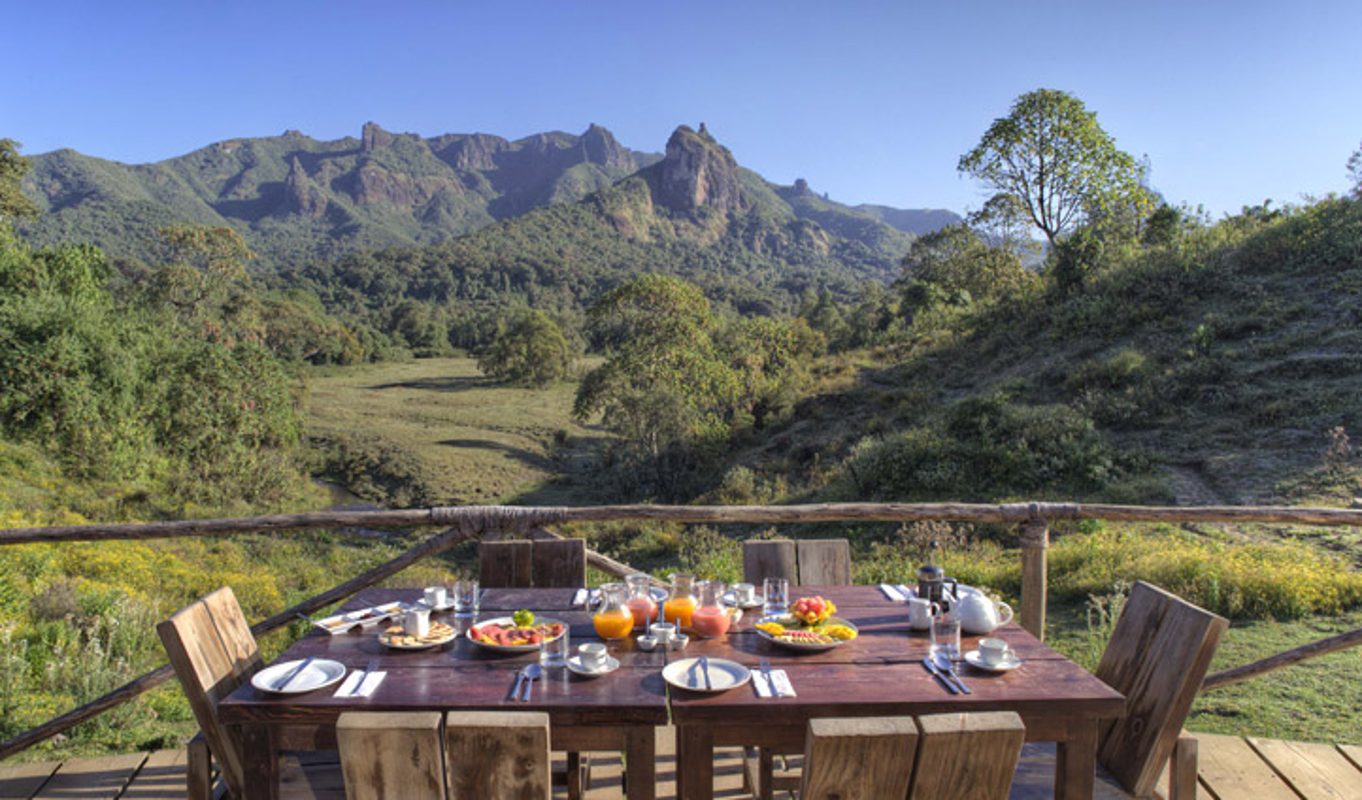 You’ll take the scenic route from Addis Ababa to Bale National Park as you head towards your rural escape. Situated in the heart of this haven of biodiversity you’ll glimpse sightings of a whole host of endemic wildlife as you embark on Ethiopian-style safaris by car or even on horseback. A drive up to the Sanetti Plateau at sunrise is your best chance of seeing the elusive Ethiopian wolf, with the added bonus of being a great spot to watch the sun come up lighting up the valley below.