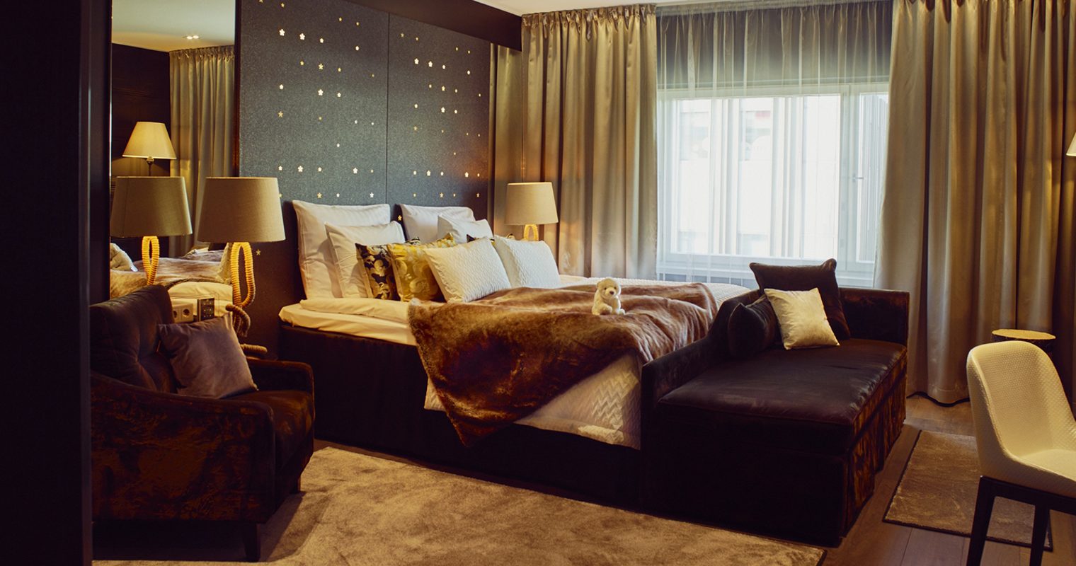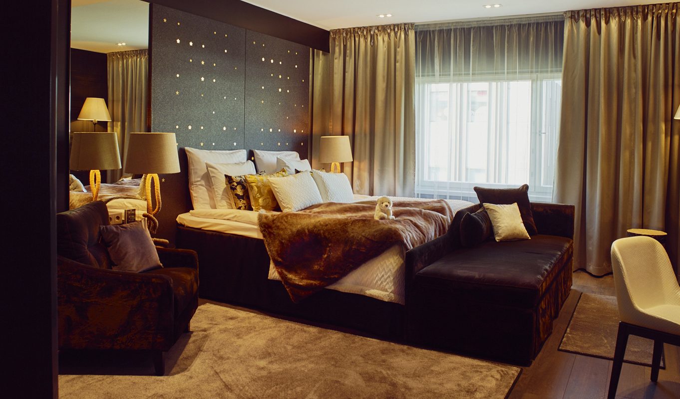 The 57 rooms and suites of Arctic Light Hotel have all been individually designed to bring a touch of glamor to the Arctic experience. Bursts of creative grandeur, such as ornate chandeliers and bespoke wallpaper, perfectly complement traditional Lappish touches, to create a luxurious effect. The modern yet cozy rooms boast all the modern conveniences desired by today’s traveler whilst the Arctic animals that gaze down from the walls infuse the rooms with a sense of Arctic nature. Choose from a number of themed suites, including the Christmas Cabin in the town center, for an added touch of polar magic.