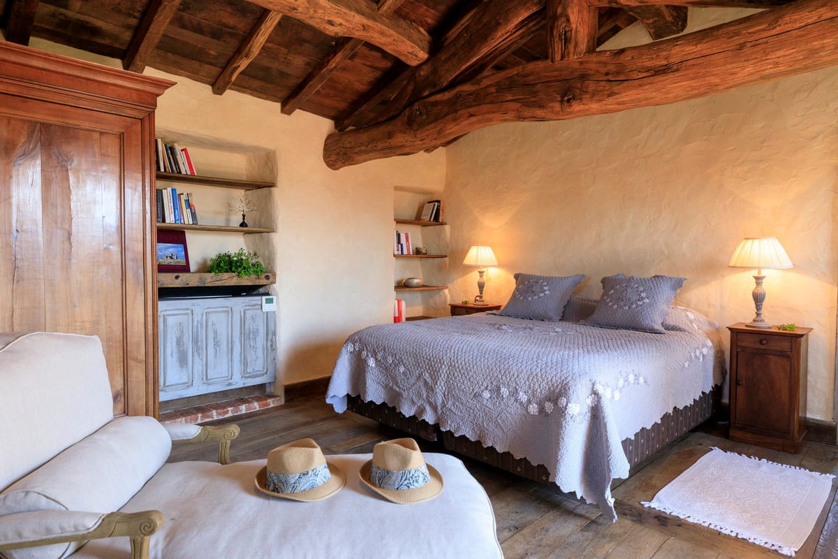 20 individual shepherd’s huts and private villas are dotted around the estate. With an air of rustic luxe, you’ll find local stone, lime walls, chestnut shutters, oak and terracotta floors – accompanied by crisp white linens and tasteful furnishings in natural tones. Many have their own private plunge pools, too. Don’t mind if you do.