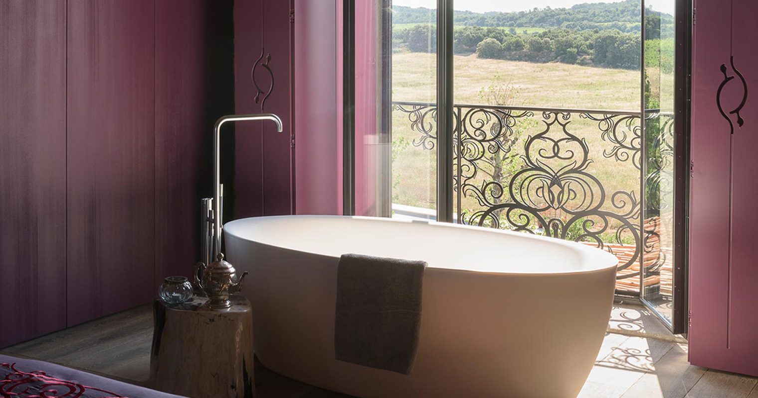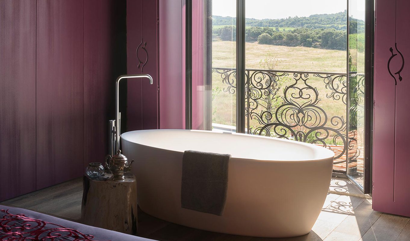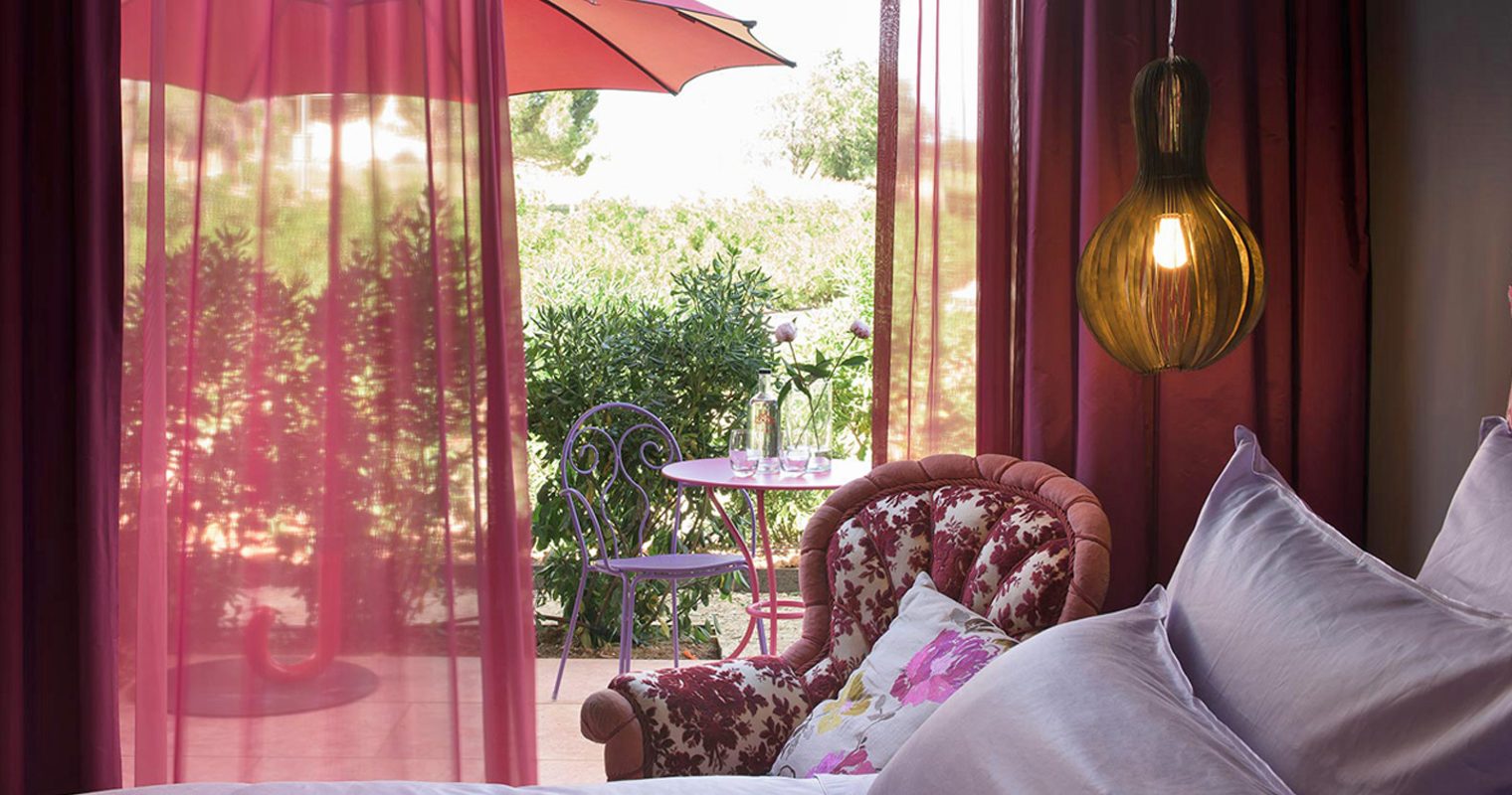 From a vast house built for sharing to a family home, a romantic artist’s loft and 3 individual rooms, there’s a perfect spot for everyone size here. Dotted throughout the village, all are bathed in wine-fuelled reds, purples and pinks with a sultry and bewitching design featuring unique artworks and ornaments collected by the owners on their travels. Each room has a balcony or terrace, perfect for soaking up that golden sunlight, whilst the six-bedroom Maison d’Amis and two-bedroom Villa Rouge each have their own private swimming pools.