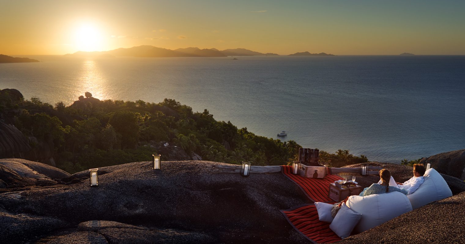A hop over the English Channel and bonjour Paris. You’ll be whisked away inside the world-renowned Hotel de Crillon, where you’ll enjoy a luxury three-night stay. As soon as you step foot in front desk, the romance will take over with nowhere doing indulgence quite like the Crillon. Spend the first three days of your trip in this beautiful city amidst the locals, dipping in and out of cafes, drifting through world-class museums and browsing the boutiques. You’ll be bedding down in a prime location, just footsteps away from Arc de Triomphe, so from here stroll hand in hand down the Champs Elysees – one of the most romantic boulevards in the world. Explore the world’s most charming city before flying down to Mahé in the Seychelles where a private helicopter will be waiting to take you to the private island of Félicité for an exclusive island getaway.
