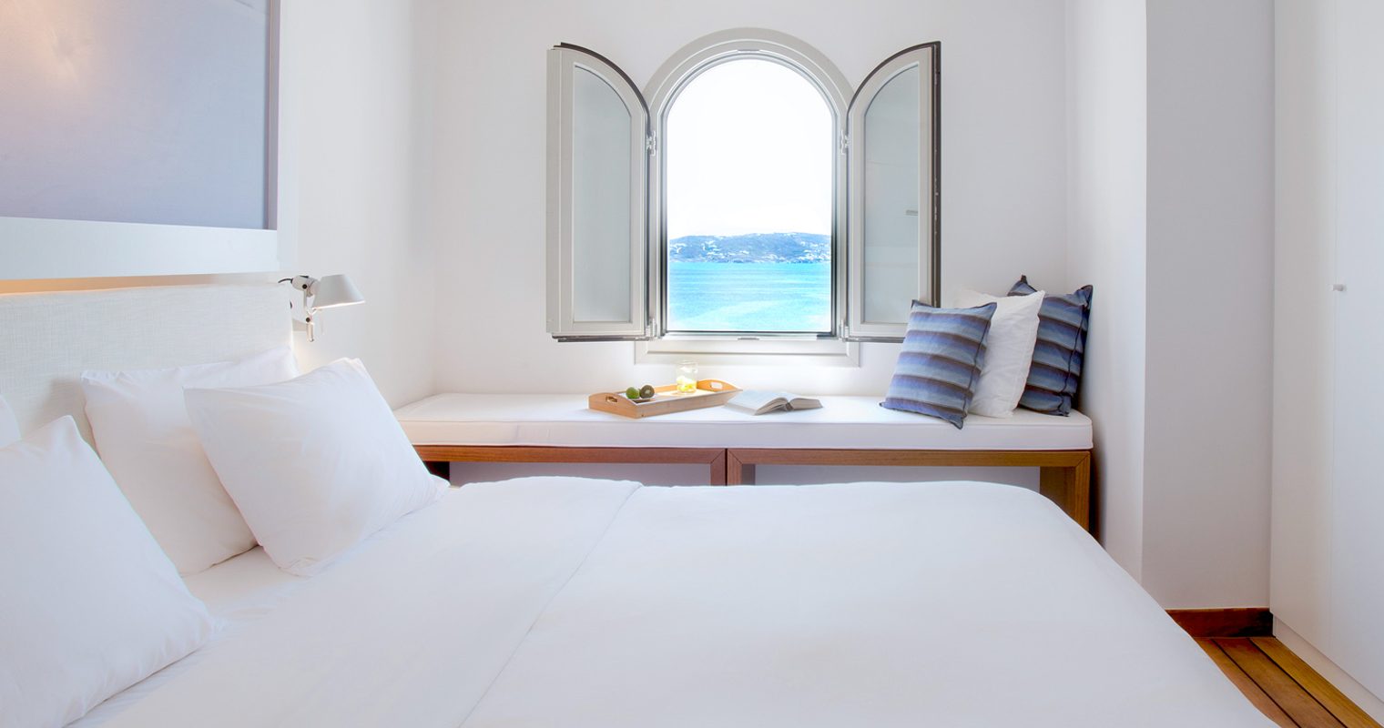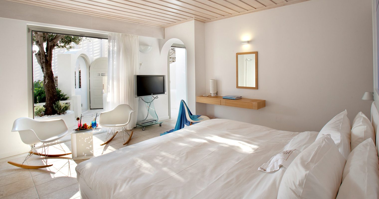 Two words: Champagne breakfast. Even better, it is served at any time of the day. On top of this, there’s a state of the art spa, gym, DVD library, valet parking and your terrace comes with a telescope for evening star-gazing. All in all, Grace Mykonos the ultimate place for pleasure, pampering and partying.