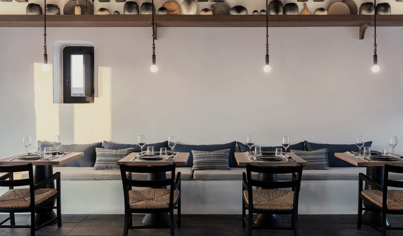 Translating to mean ‘inviting’, Kalesma has an unshakeable philosophy of hospitality that places emphasis on its sense of familiarity, of creating a place you can truly feel at home. So, whilst the spaces may be cavernous, the welcome remains ever-warm. Nowhere do you feel this more than at the weekly feast at Pere Ubu, where guests are made to feel a part of the Kalesma family. The evening is both a celebration of Mediterranean flavors and Mykonian energy. Gather around the fire pit at Aloni to start, watching as the flames set fire to the night sky, before slipping into this evening of authentic connection.