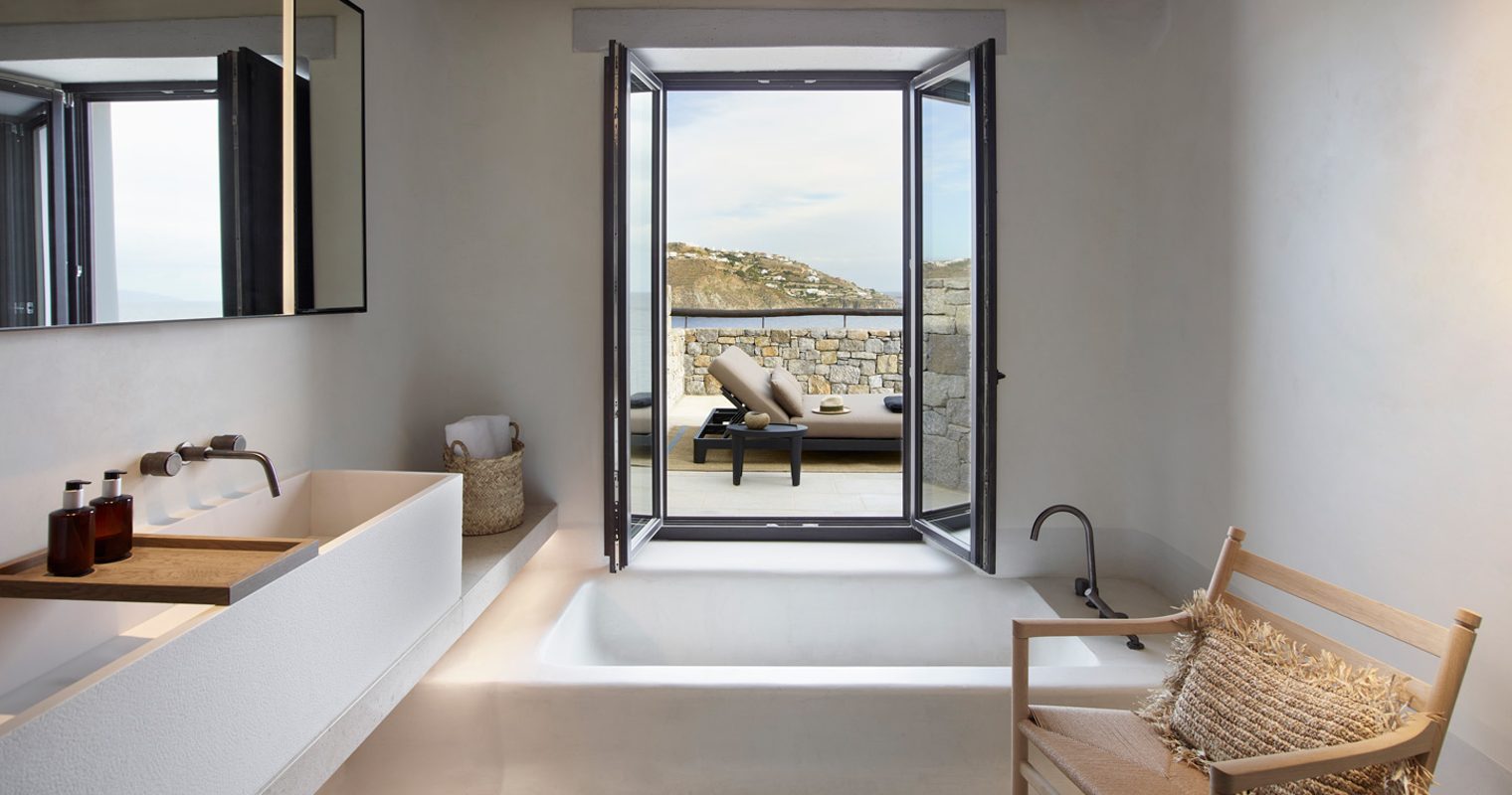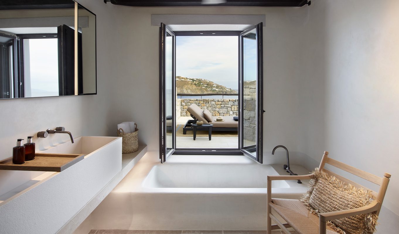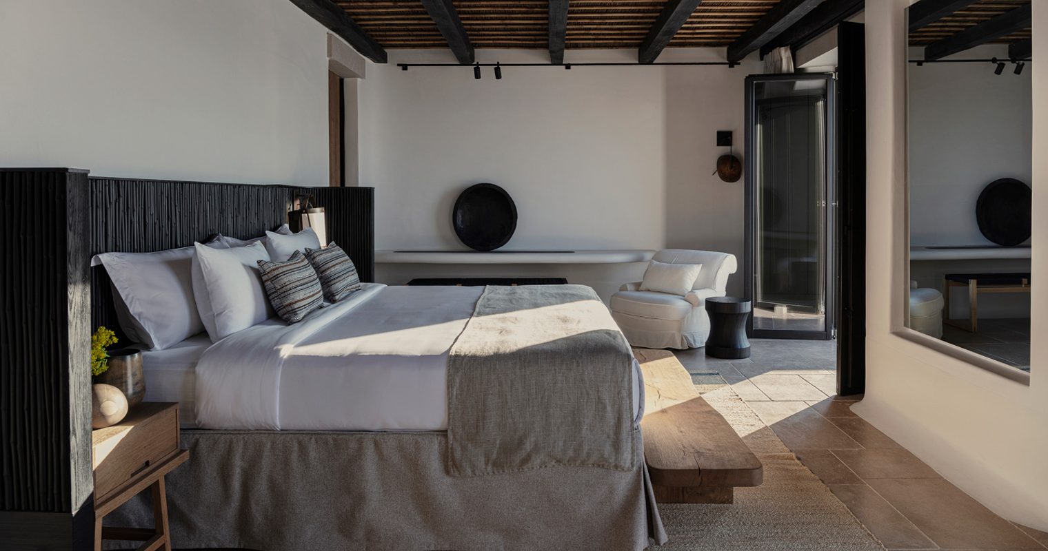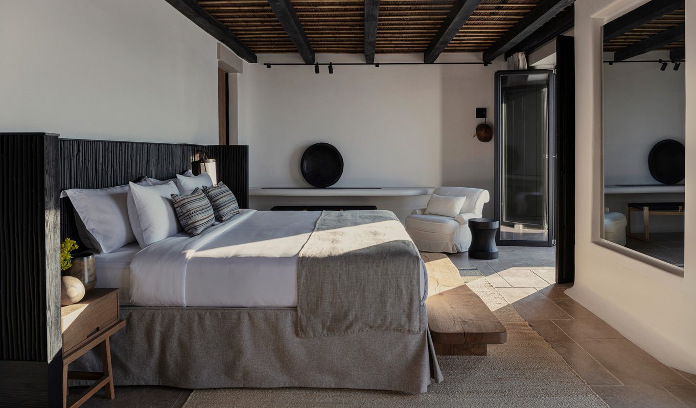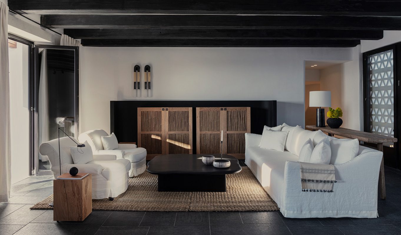 Children are welcome to share with you, but the two Grand Villas are perfect for those looking for a bit more space. Offering three or four bedrooms (and the option to connect the two), the scale is grander here with a larger pool and sunset views over neighboring Delos.