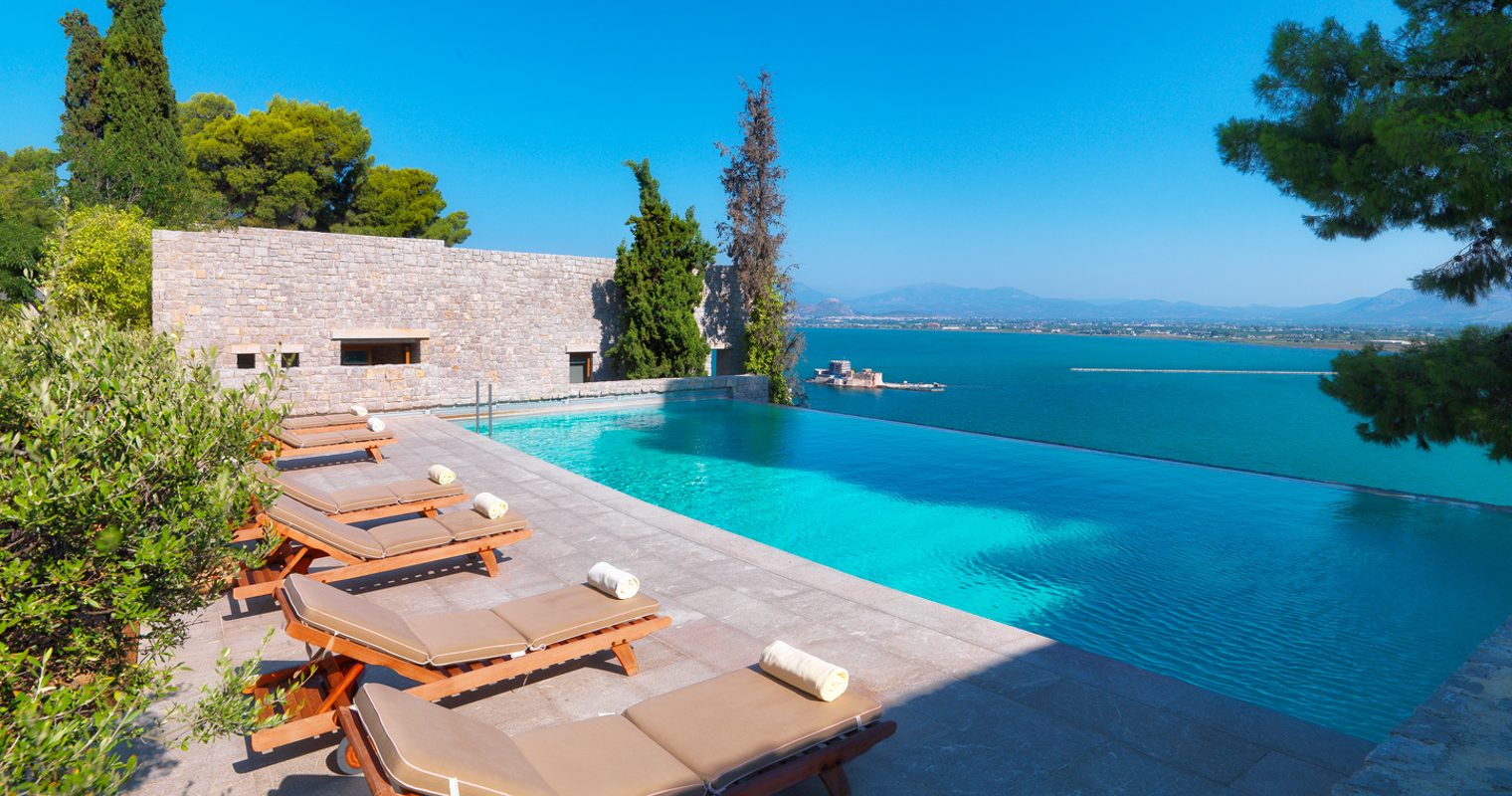Finally, there’s time for rest and relaxation at Nafplia Palace Hotel & Villas with its spacious accommodations and tempting infinity pools. Set up on the hillside, you’ll have enviable views across the Bay of Argolis however when it comes time to explore further, there’s also a handy lift that will whisk you straight down to sea level.
