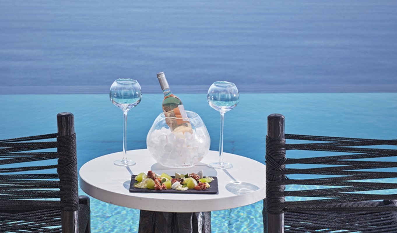 Featuring hand cut stone, rich exotic woods and custom-made furnishings, the 64 spacious rooms and suites of Myconian Utopia are nothing less than breathtaking. Elegantly fusing modern opulence with the island’s innate beauty, we simply could not get enough of the natural decor and gorgeous freestanding stone bathtubs – or the endless views. Head out onto your private terrace for awe-inspiring vistas of Elia Beach and the Aegean Sea, or better still, enjoy them from the comfort of your private jacuzzi or plunge pool. Offering the ultimate privacy and tranquility, it’s no wonder our honeymooners love it here.
