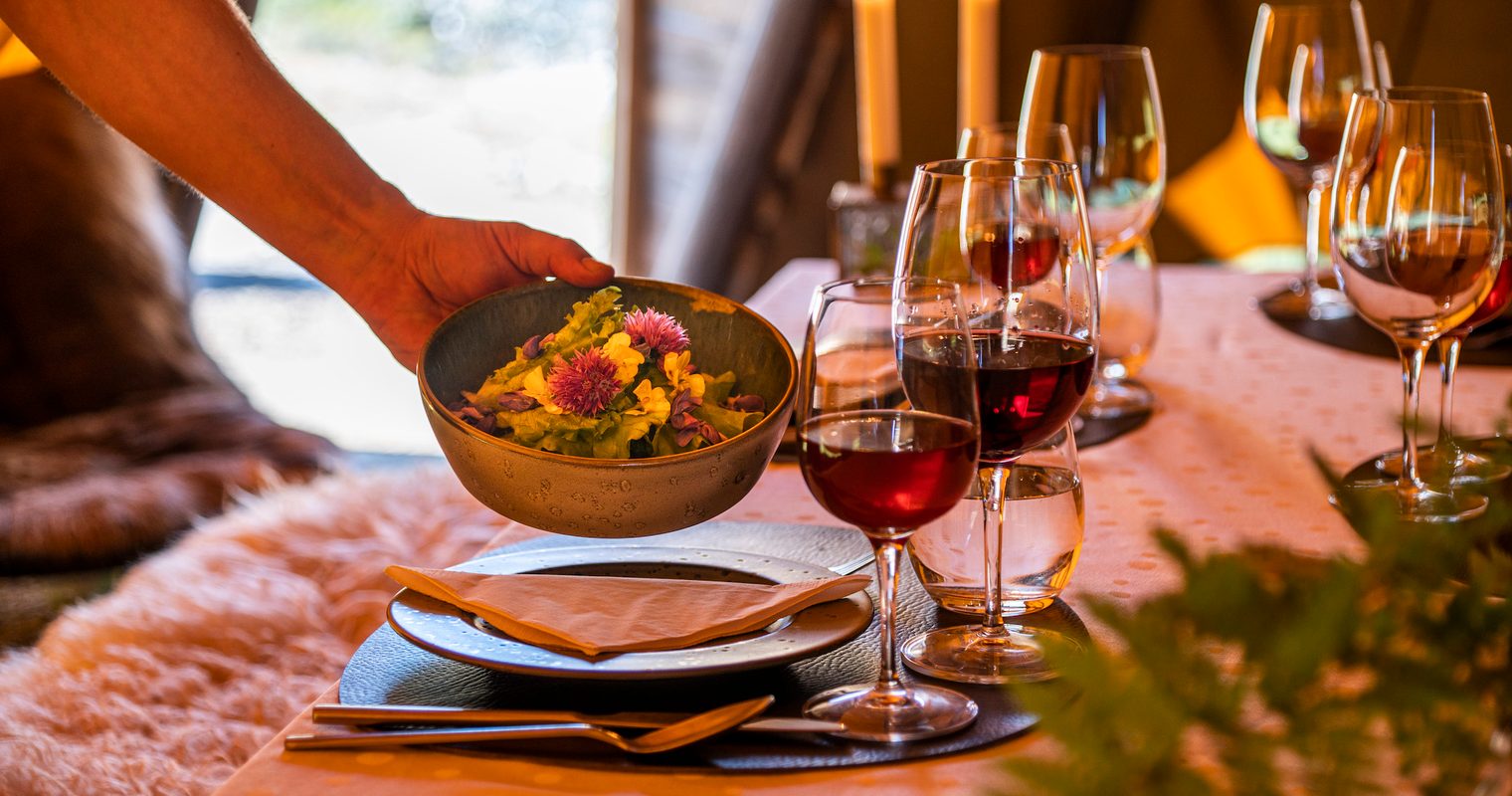 Wrapped in comfort and Greenlandic charm, each of the six heated tents feature comfy beds, cozy reading chairs, and warm lighting. Each sleeping tent also has its own separate bath tent . With all the amenities of a modern bathroom, you’ll find locally made bath products and hot water showers (perfect after a day exploring on the ice, or in the Arctic Ocean).