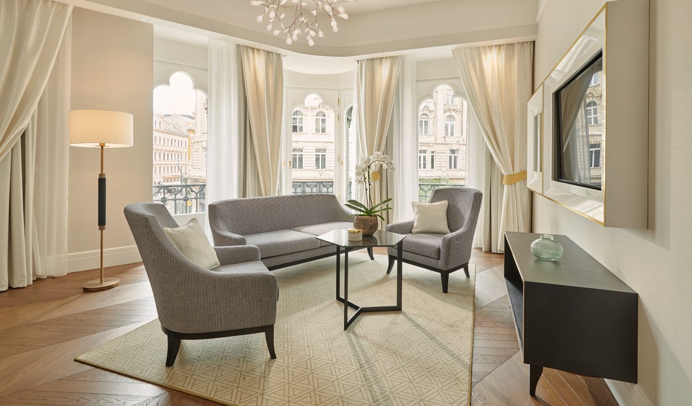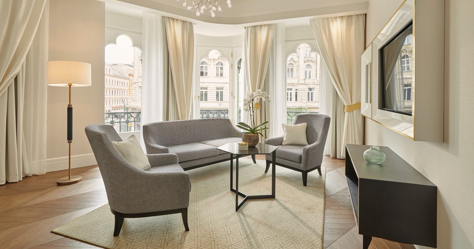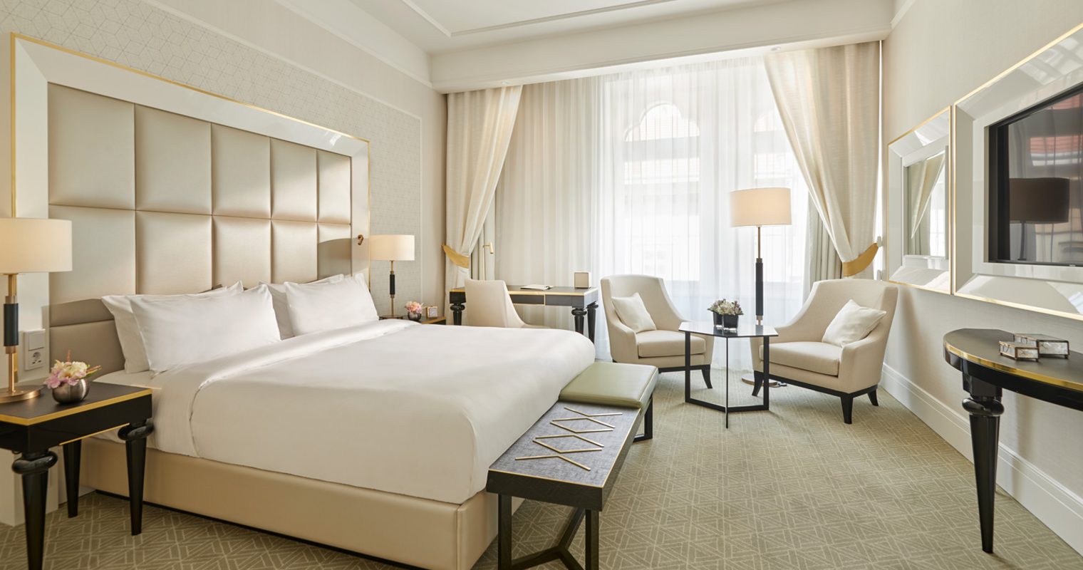 Experience the luxury comfort of Párisi Udvar’s elegant rooms and suites. These light and airy spaces present a stylish use of white interiors, embellished with a subtle gold finish. Comfort is at the forefront, from the plush pillows to the ultra-soft linen. Skilled Hungarian craftsmanship is showcased throughout, from the statement headboards that shimmer with a silvery gloss, to the rose-gold mosaic tiling that surrounds the grand bathroom mirror.