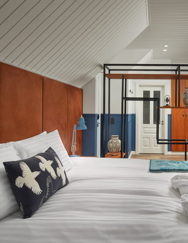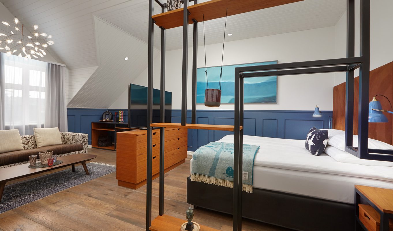 Full of boutique charm, each of the 88 rooms and suites at Alda has its own individual personality. United through contemporary design, they are stylish and cozy, minimalist with splashes of color – and utterly Icelandic. We loved the Attic Rooms with their views over Reykjavik from the balcony and North Atlantic Ocean – but for unrivalled style and sophistication, it has to be the King and Queen Suites. Splashes of deep blues bring the views outside to life while statement design does the rest of the talking.