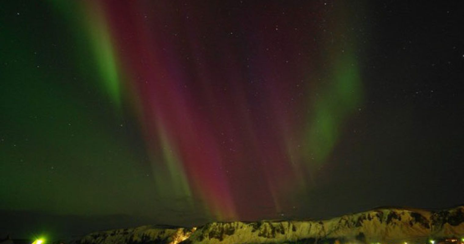 Gaze up at the night sky to see the aurora borealis from Hotel Laki’s rooftop terrace. Treat yourself to a delightful hot chocolate in the winter months to keep you warm as you wait to see dancing colors of emerald green, cobalt, magenta and violet. The hotel is family-run, and if the sky is particularly clear, they will even call your room to inform you so you don’t miss out.