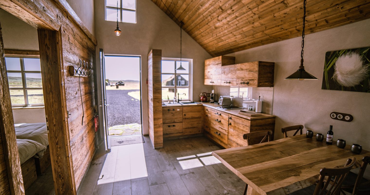 Inspired by the Vikings’ craftsmanship, the traditional stone-slated, turf-roofed houses seamlessly blend into the surrounding landscape. Inside your Icelandic home, the one or two-bedroom hideaways all host open-planned kitchen-lounges, tastefully designed with cozy finishes. Grab a drink and relax in the steamy waters of your outdoor basalt stone pool after a day of exploration.