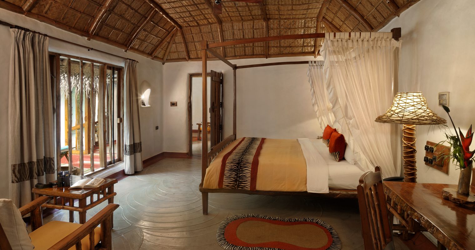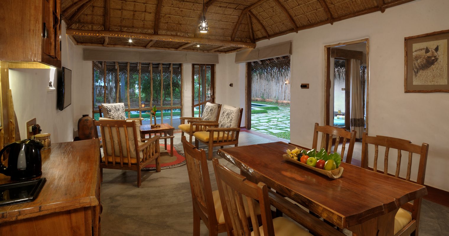 Evolve Back Kabini has perfected the art of treading lightly as, whilst on the outside, colors and textures of the natural landscape are used to camouflage the 37 huts against their backdrop, inside is a whole other story. Step through and discover vast, wide open living spaces which bring a sumptuous warmth to your stay. Whilst ethnic furnishings and tribal patterns belie the inspiration from the local Hadi villages, the sprawling private pools and jacuzzis prove that this is tribal living at its most luxurious.