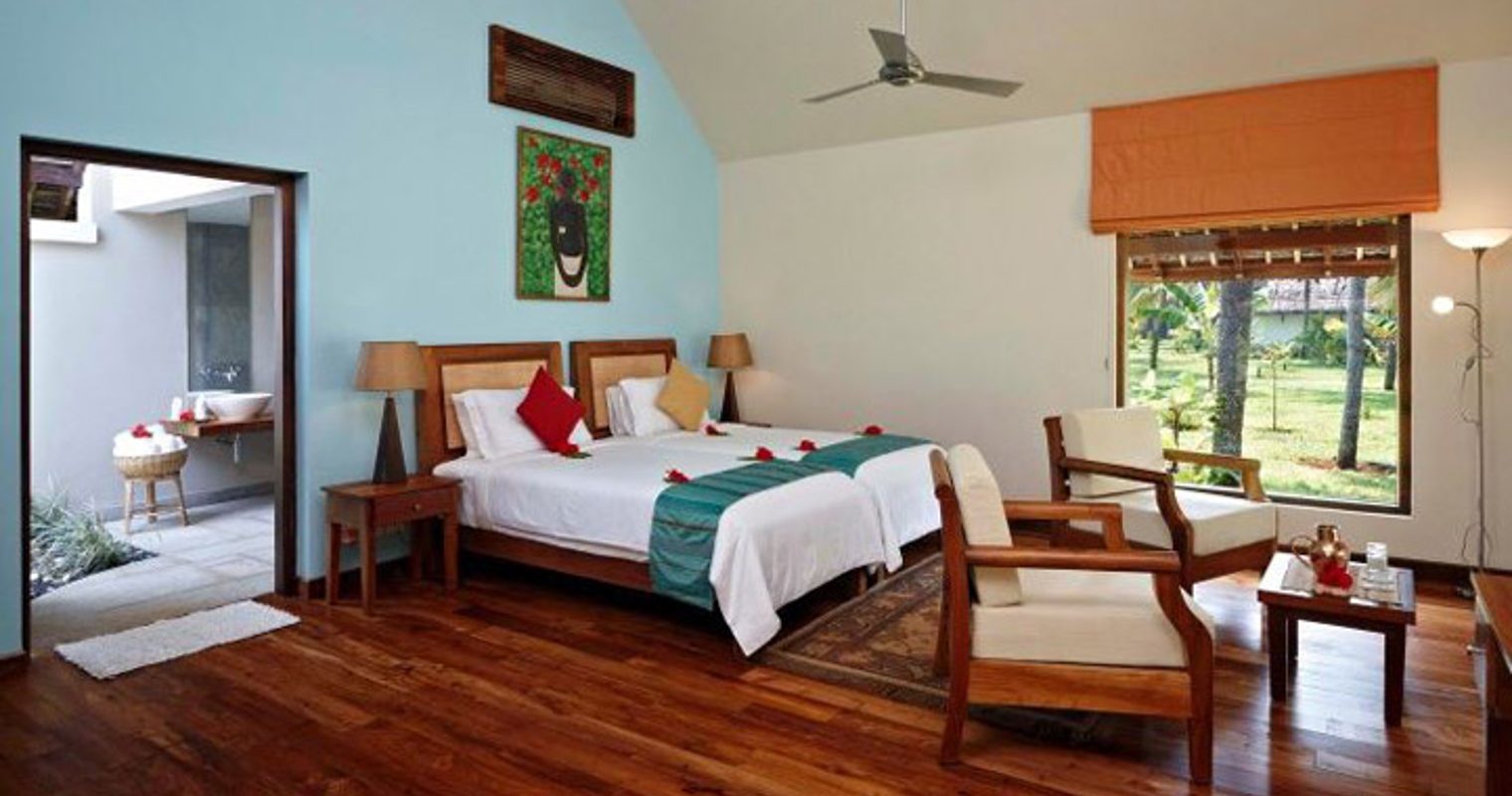 Neeleshwar Hermitage is home to just eighteen boutique cottages, each completely private and boasting individuality. Made from local laterite and thatch, your room also host hand crafted furniture with woodwork fashioned in a traditional style. In the Indian sun, sit out on your private veranda or gently rock in a hammock and if the heat becomes too much, retire to your airy haven and listen to the soundtrack of the waves.