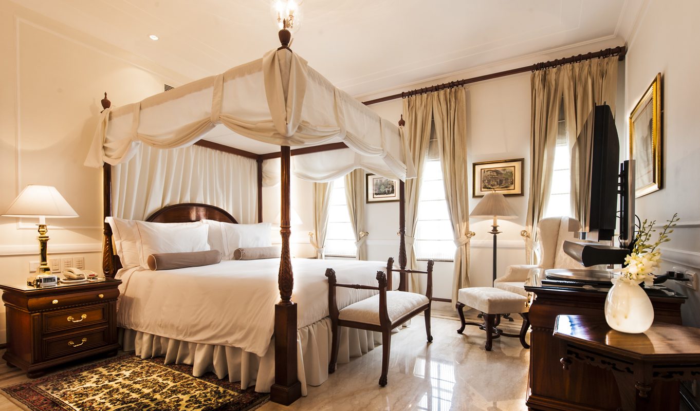 With an incredible choice of suites, The Imperial really takes the lead in colonial style. Think dark wooden furniture with soft white cushions, swathes of luxurious curtains, gold-framed paintings and atmospheric lighting. The Imperial rooms, Heritage suites, Deco suites, Deluxe suites, Lutyens suite and last, but certainly not least, the beautiful Royal Imperial suite are all equipped with exclusive linen from Porthault and boast grand marble baths.