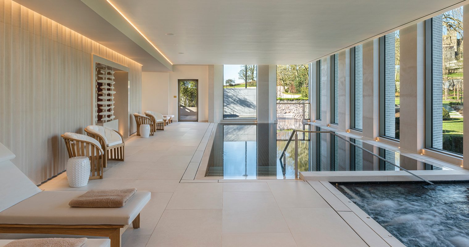 Cashel Palace’s storied past began when it was home to the Church of Ireland’s Archbishop, before transitioning into a renowned country house hotel – hosting the likes of Jackie Kennedy, Elizabeth Taylor and Richard Burton. In contrast to its history, the property’s new and contemporary spa provides a wonderful space to unwind, complete with an expansive indoor pool and jacuzzi – all against a backdrop of beautiful garden views.